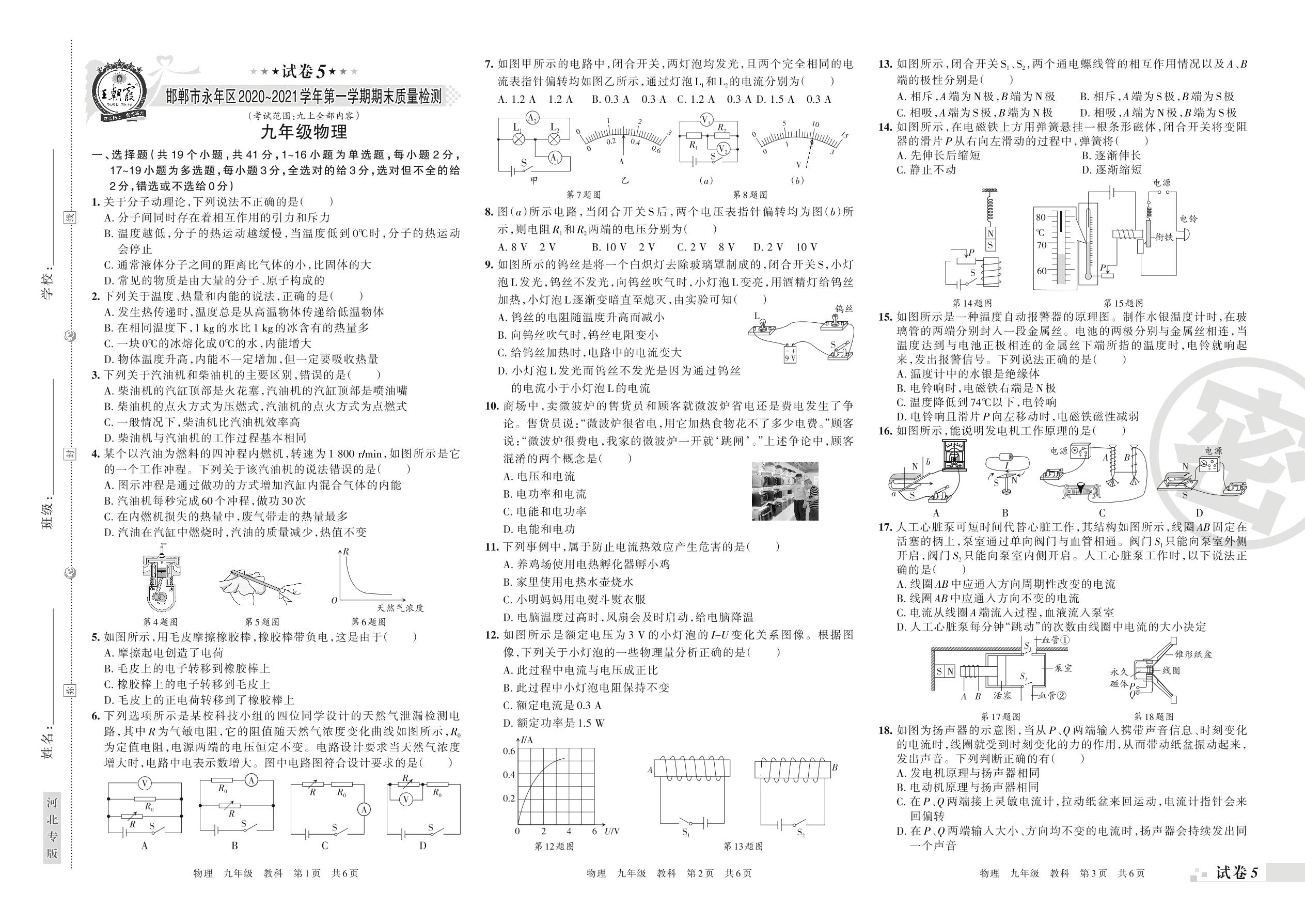 邯郸市永年区2020~2021学年第一学期期末质量检测九年级物理(教科版)【5】