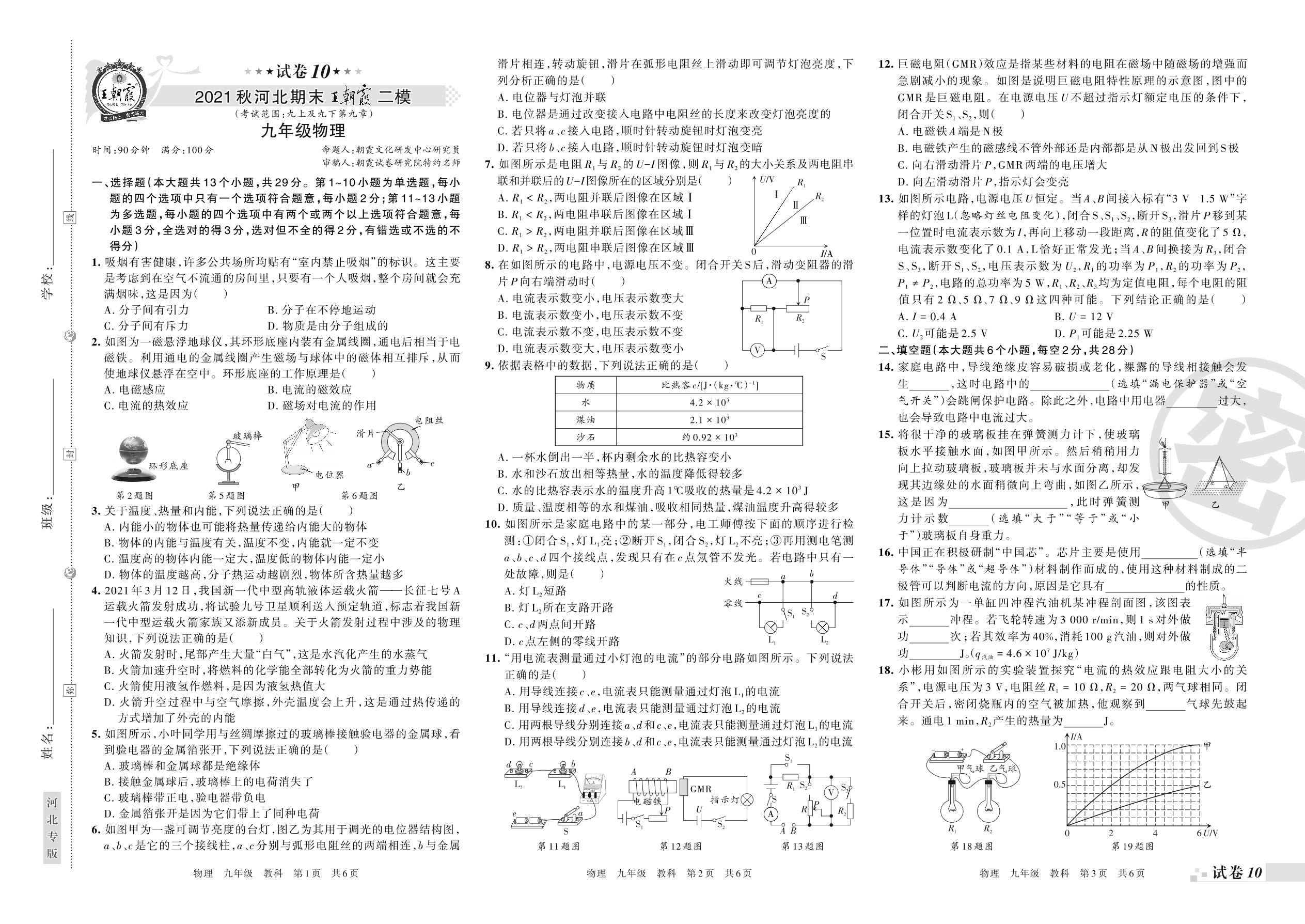 2021秋上册河北期末王朝霞二模九年级物理(教科版)【10】
