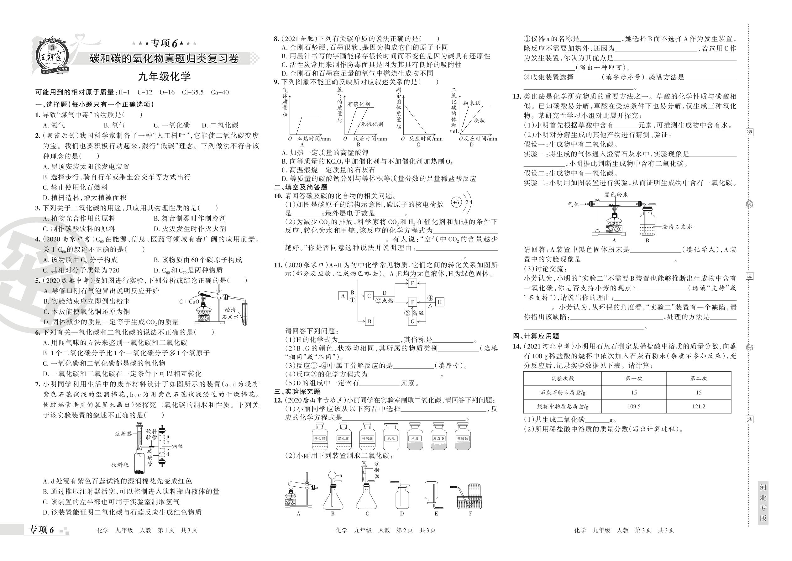 九年级化学人教版上册专项卷