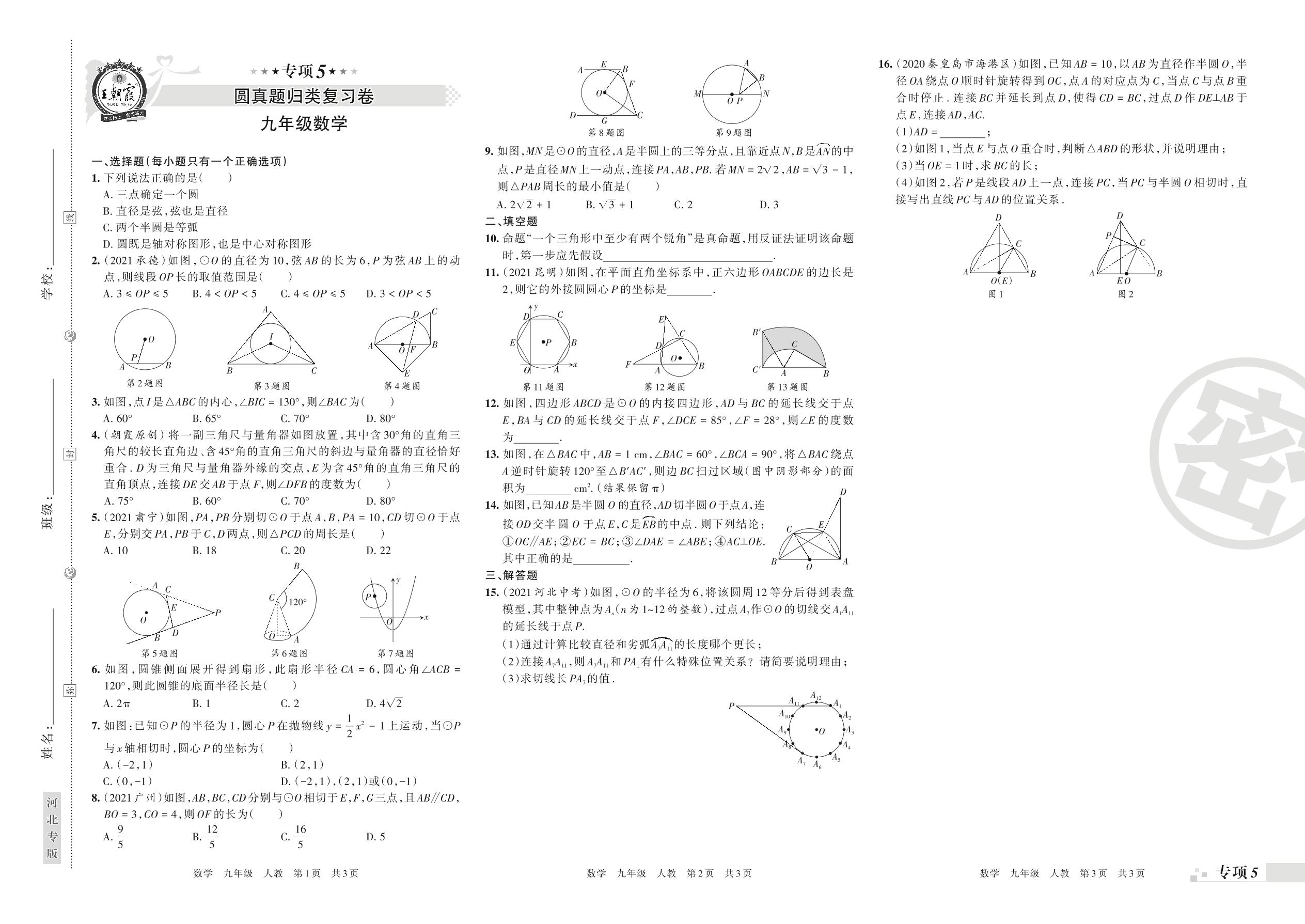 2021-2022学年第一学期王朝霞期末专项卷——圆真题归类复习卷九年级数学(人教版)【5】
