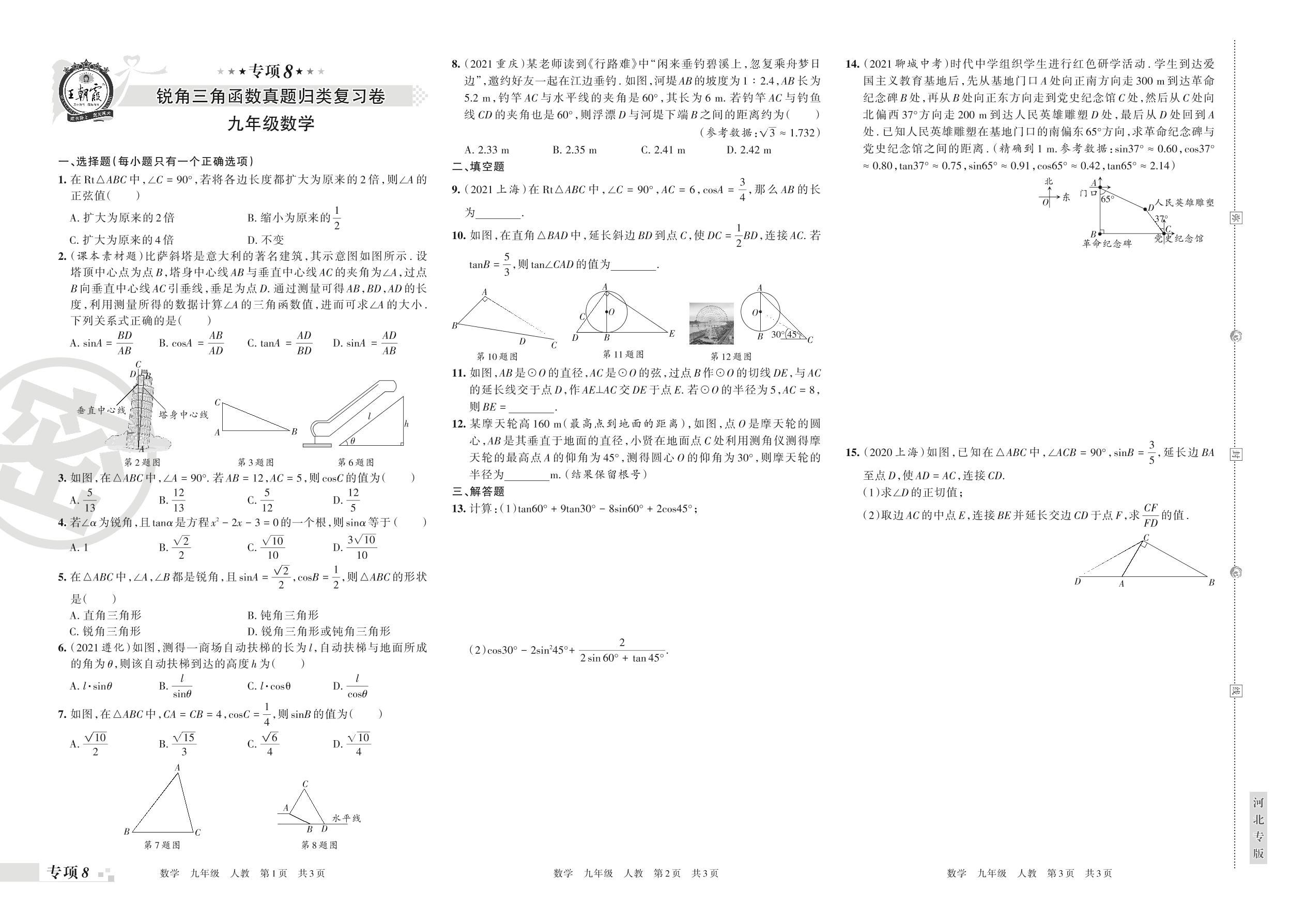 2021-2022学年第一学期王朝霞期末专项卷——锐角三角函数真题归类复习卷九年级数学(人教版)【8】