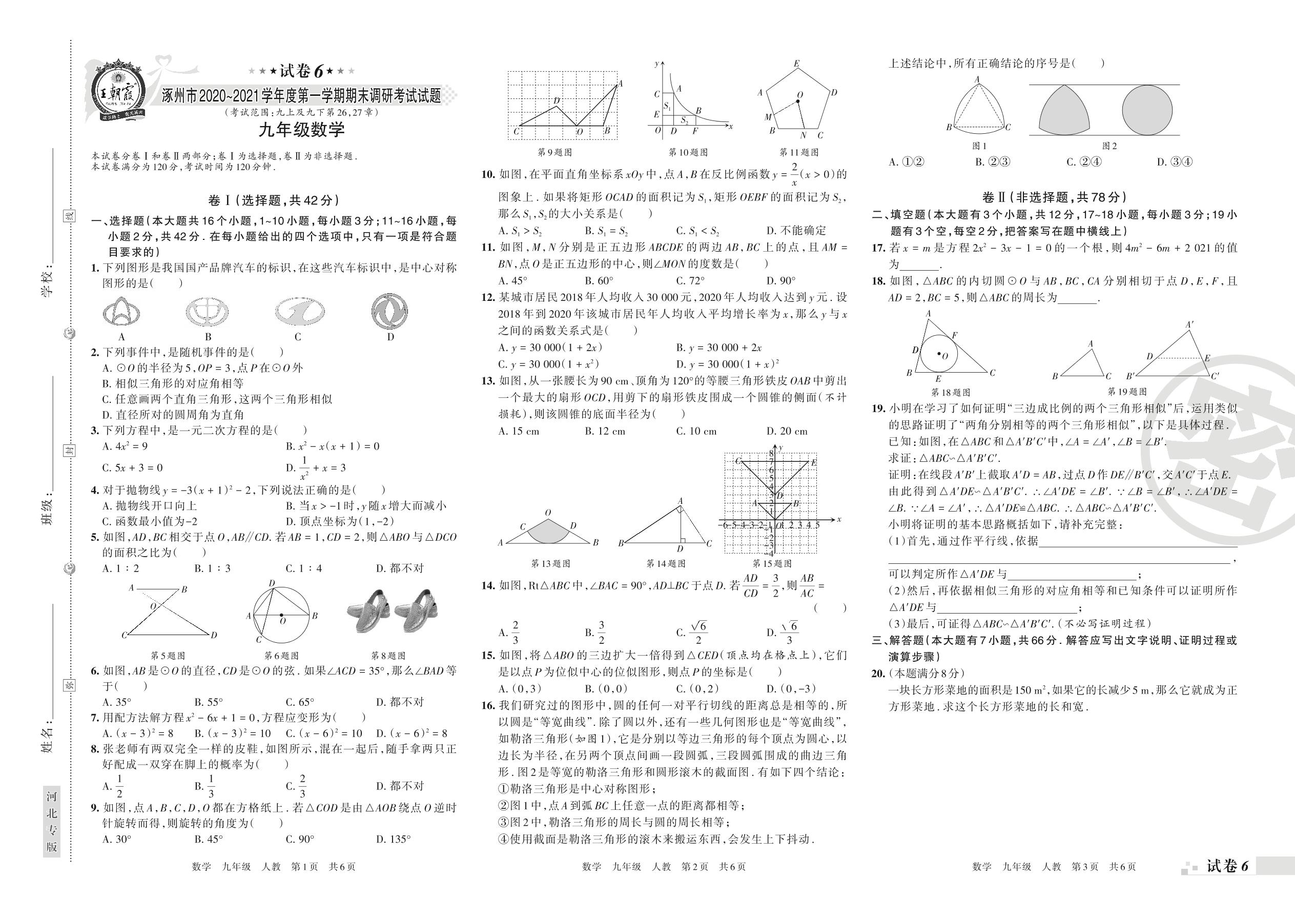 涿州市2020~2021学年度第一学期期末调研考试试题九年级数学(人教版)【6】