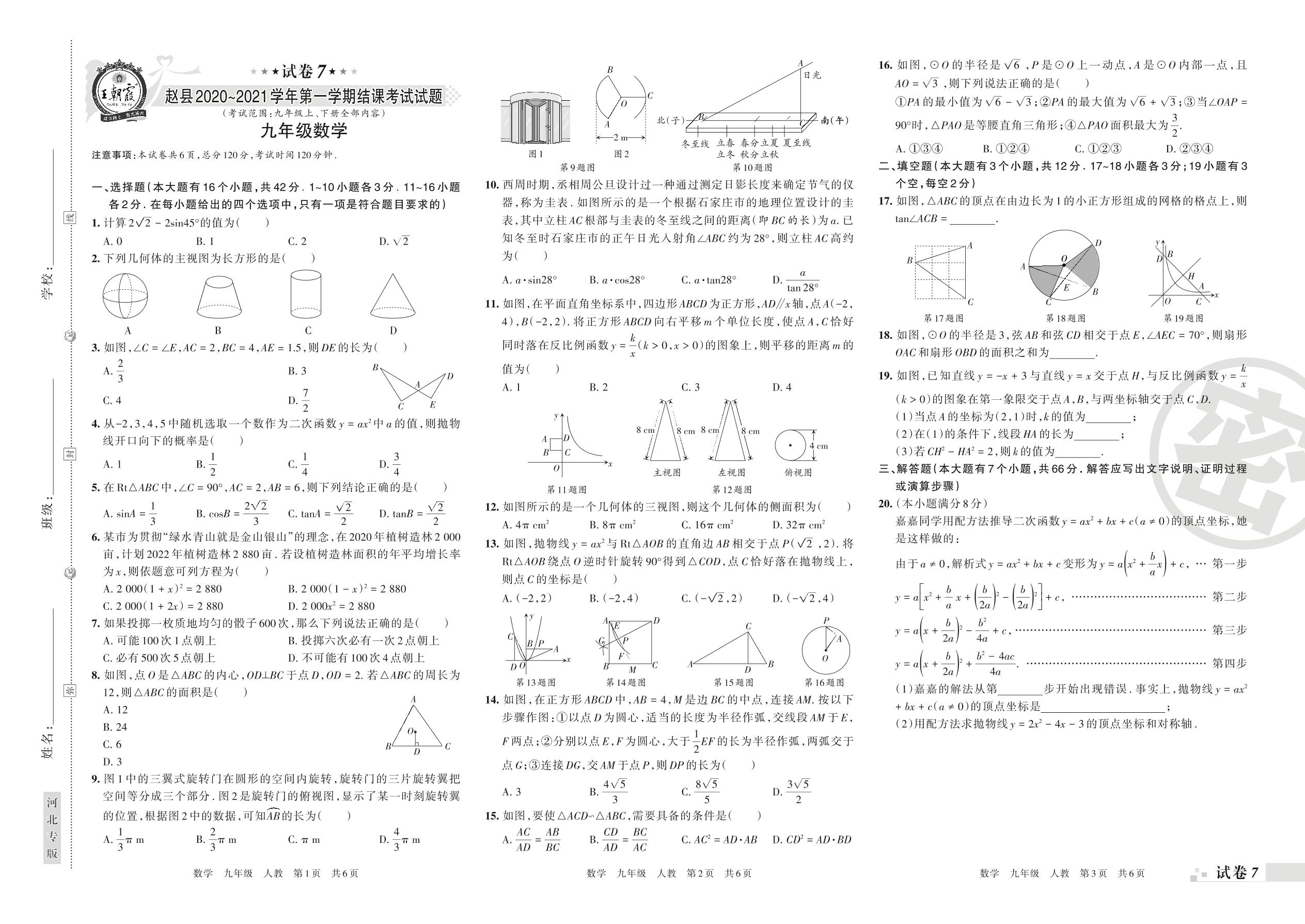 赵县2020~2021学年第一学期结课考试试题九年级数学(人教版)【7】