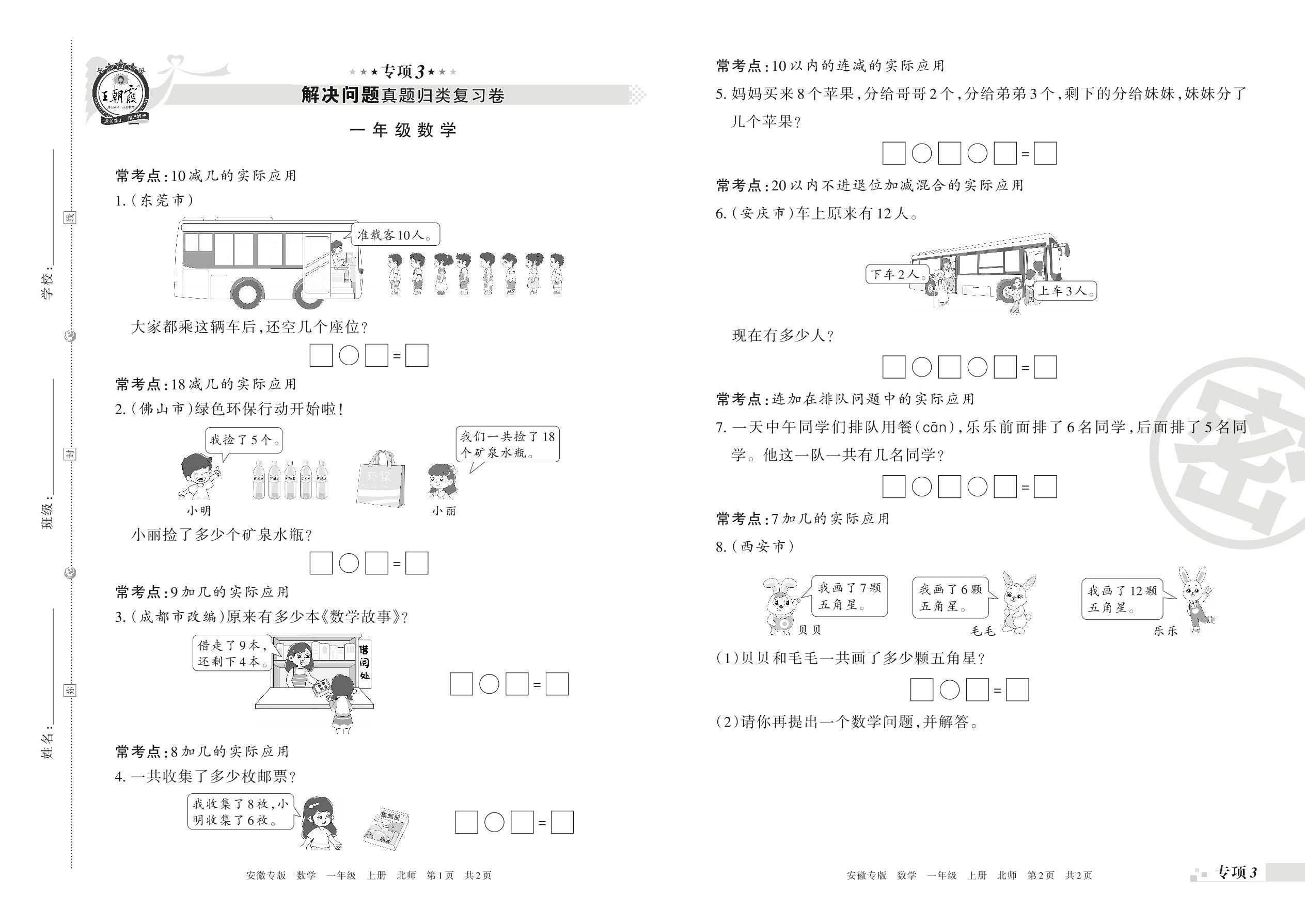 王朝霞期末专项卷——解决问题真题归类复习一年级上册数学(北师版)【3】
