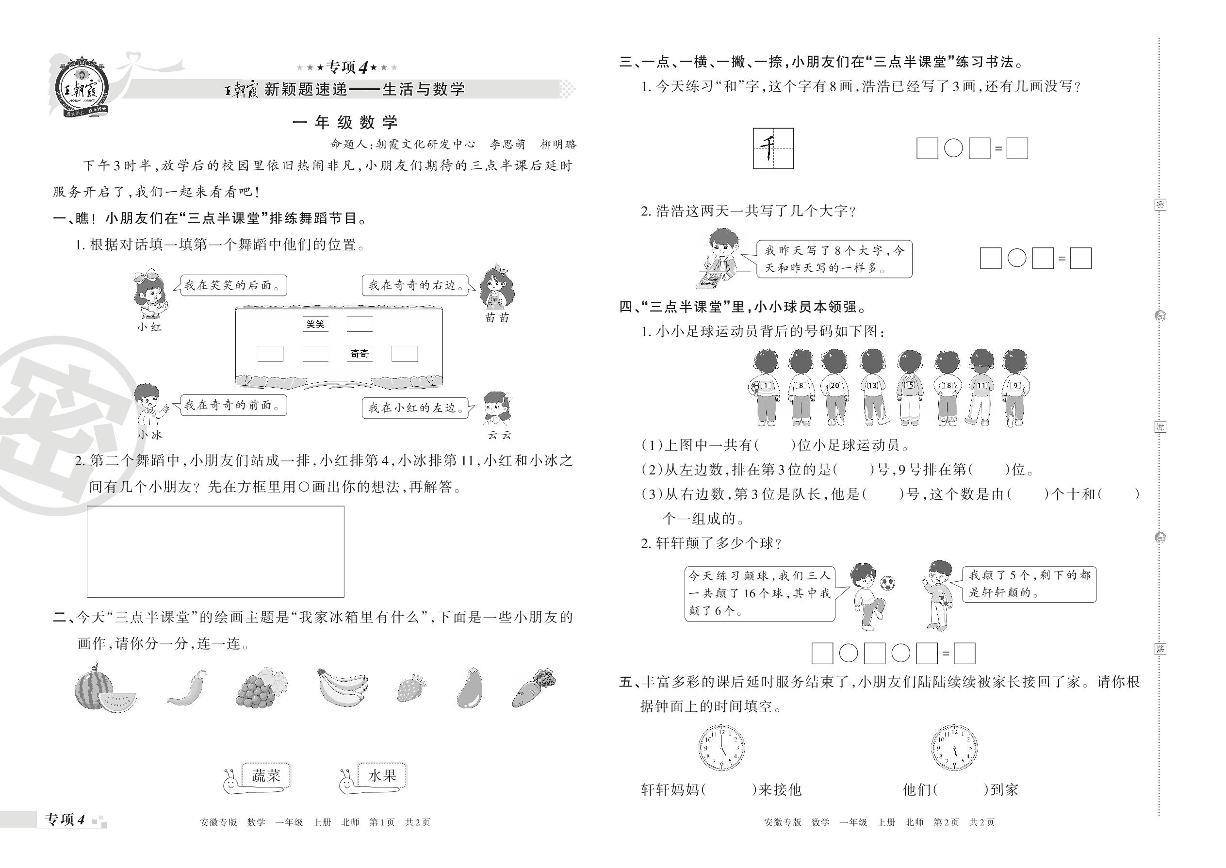 王朝霞期末专项卷——新颖题速递:生活与数学一年级上册数学(北师版)_R211222142205154【4】
