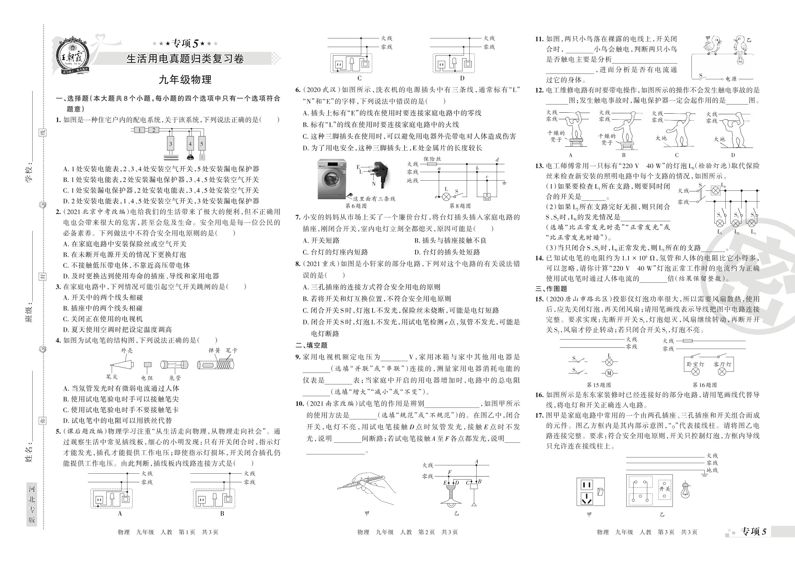 2021-2022学年第一学期王朝霞期末专项卷——生活用电真题归类复习卷九年级物理(人教版)【5】