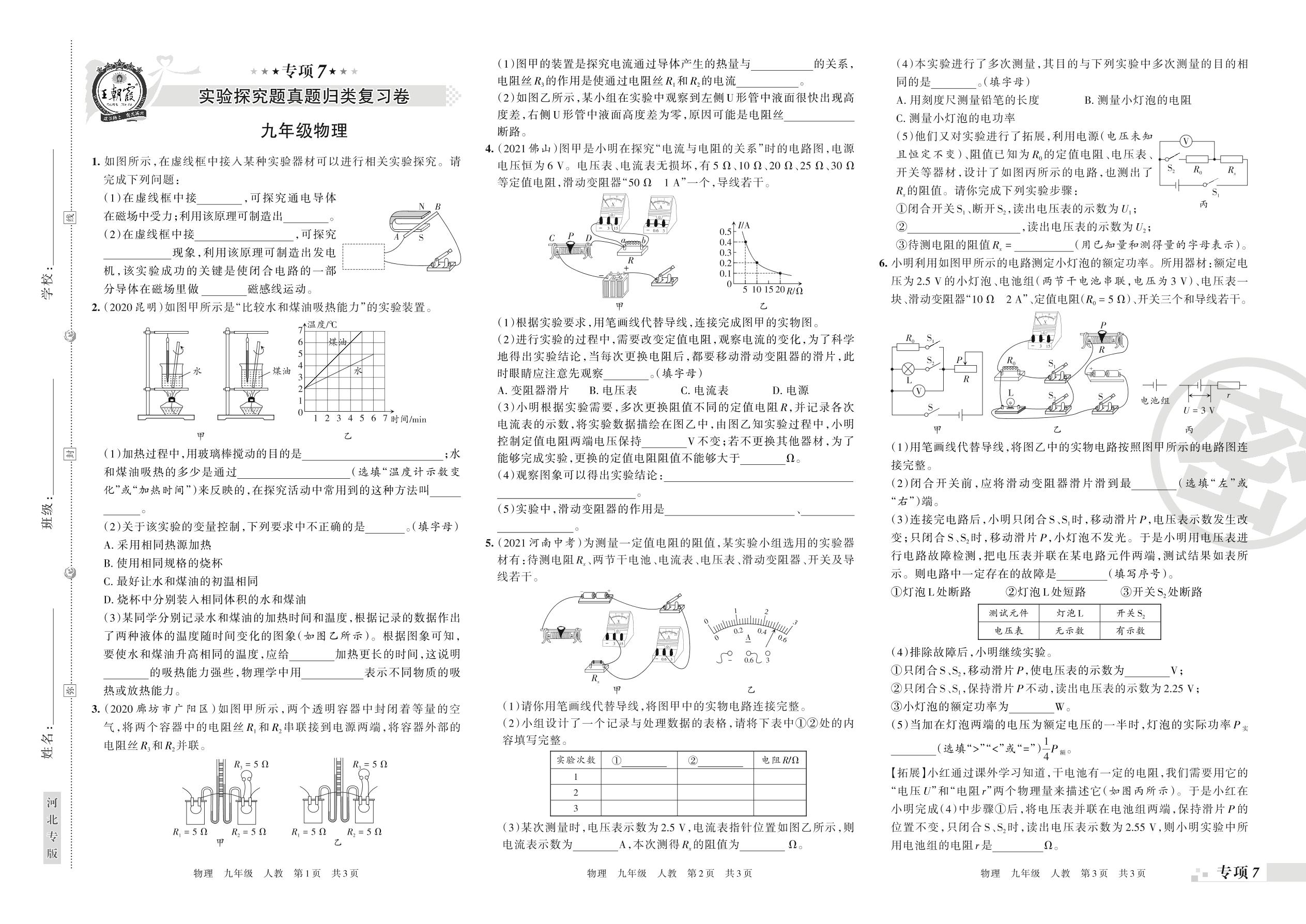 2021-2022学年第一学期王朝霞期末专项卷——实验探究题真题归类复习卷九年级物理(人教版)【7】
