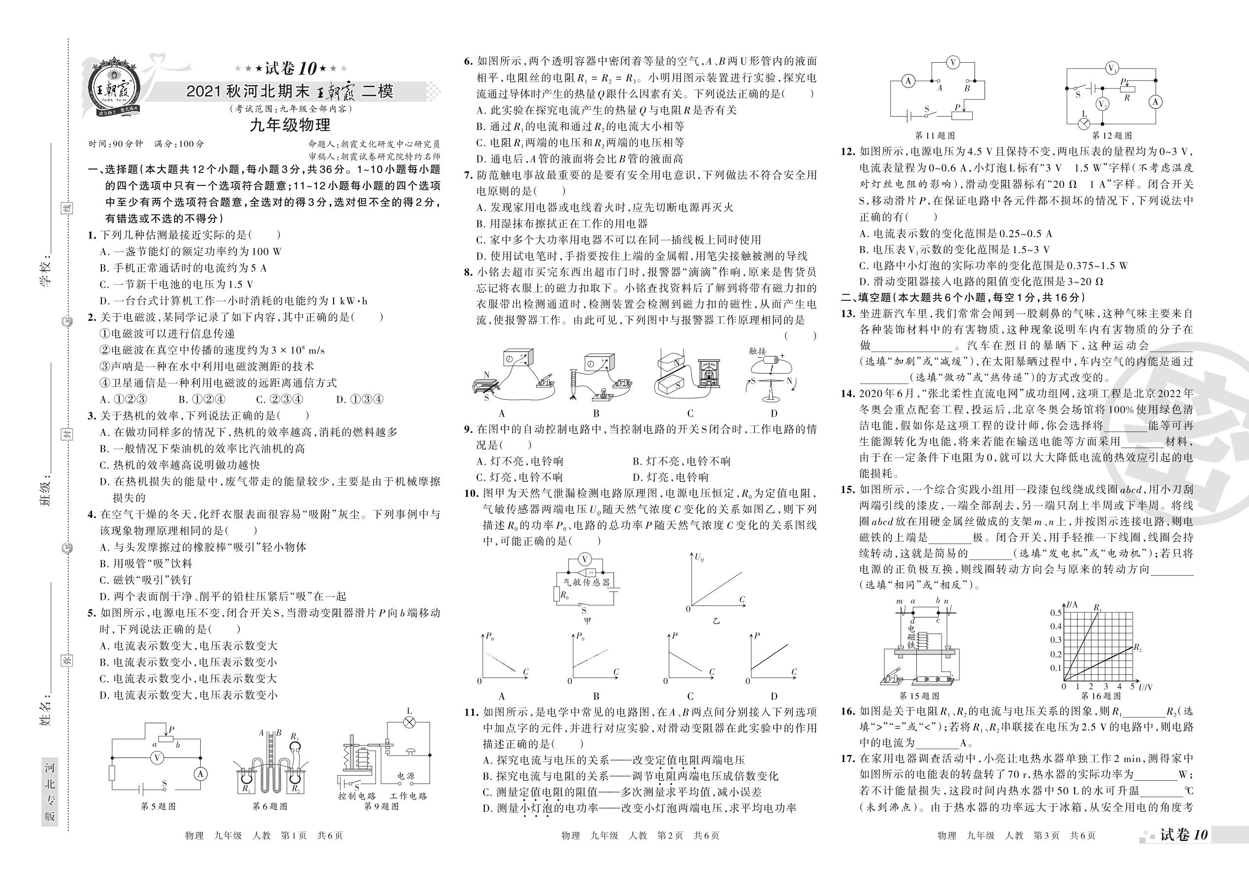 2021-2022学年第一学期王朝霞期末模拟卷九年级物理(人教版)【10】