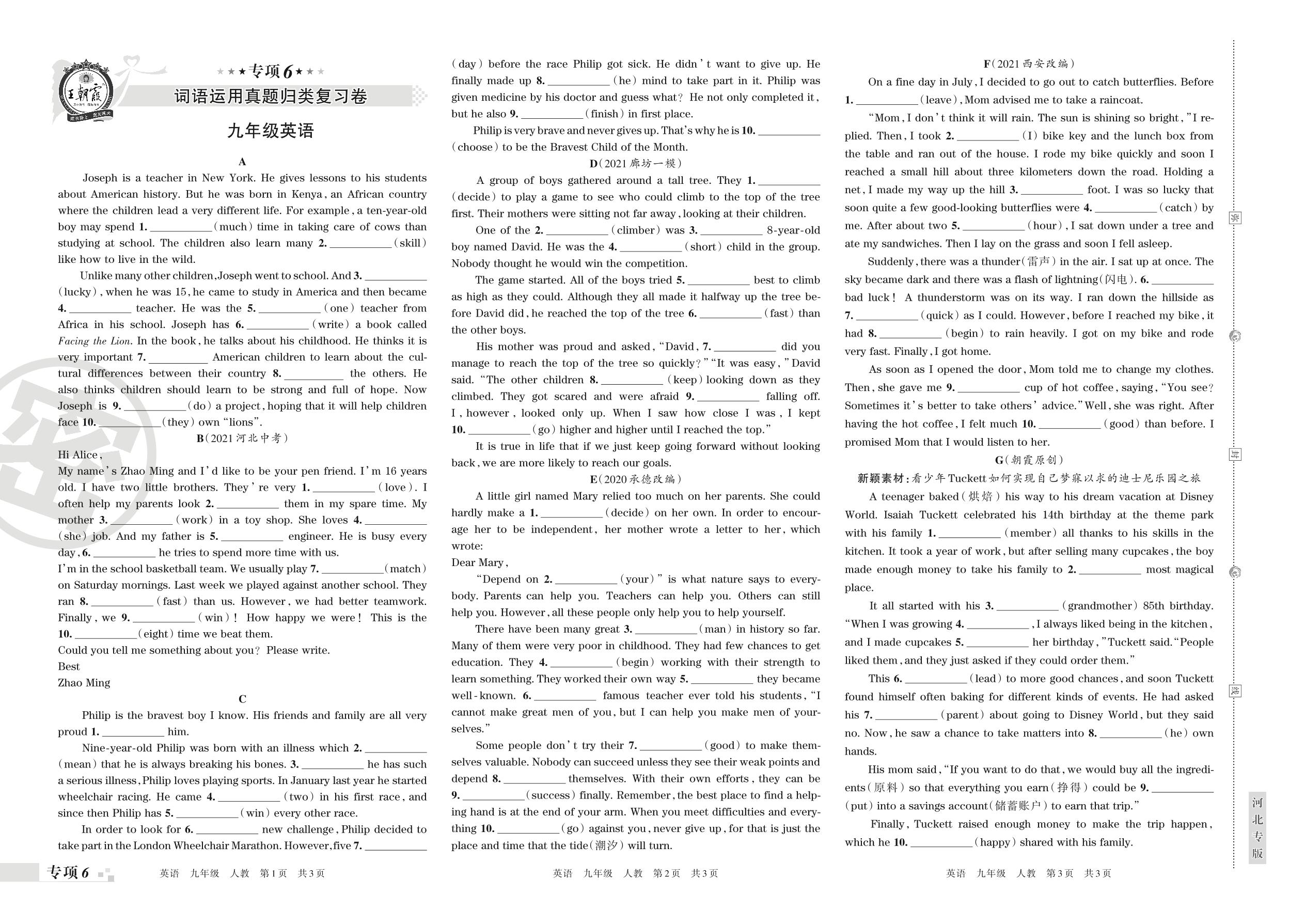 2021-2022学年第一学期王朝霞期末专项卷——词语运用真题归类复习卷九年级英语(人教版)【6】