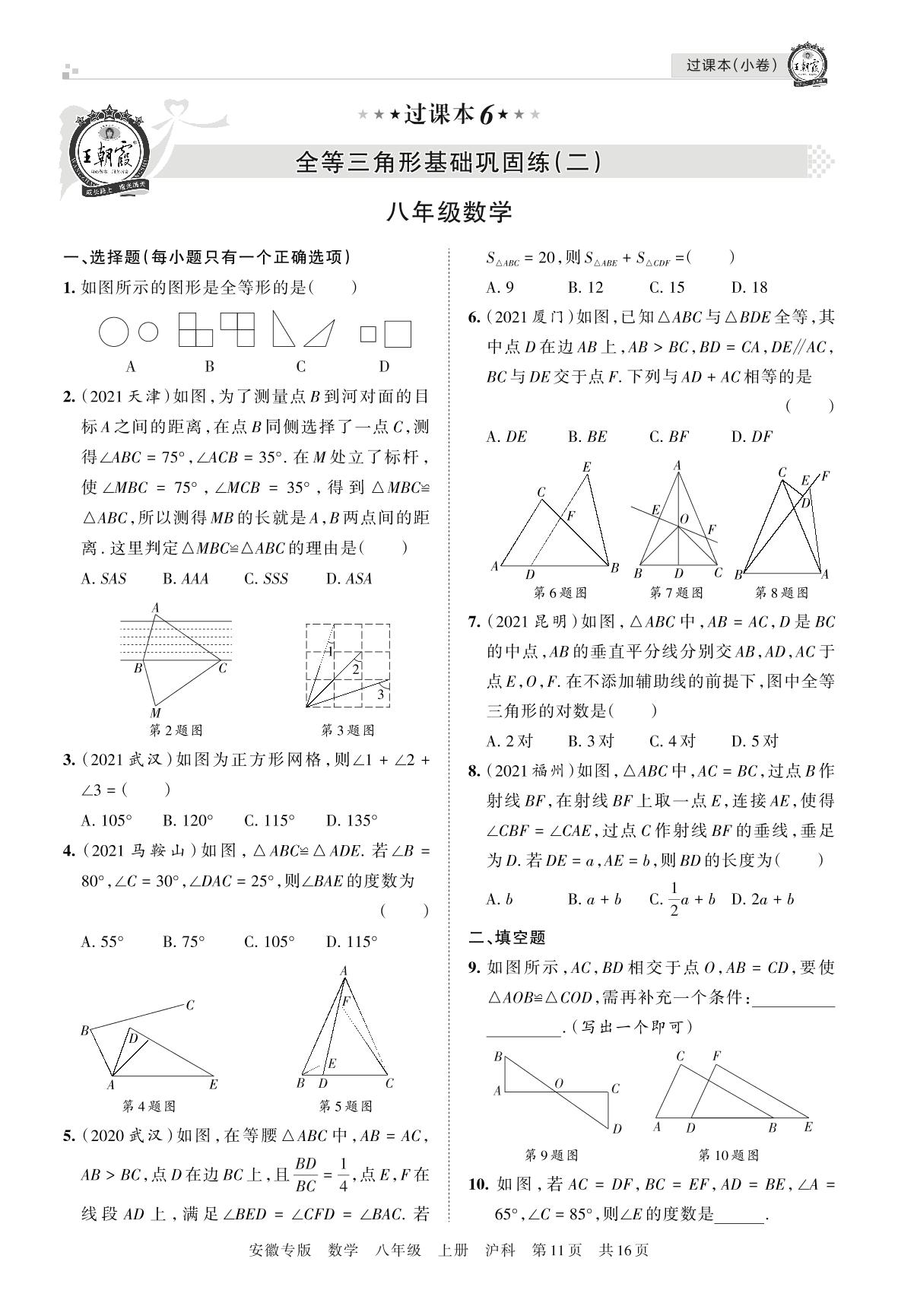 王朝霞期末过课本——全等三角形基础巩固练(二)八年级上册数学(沪科版)【6】