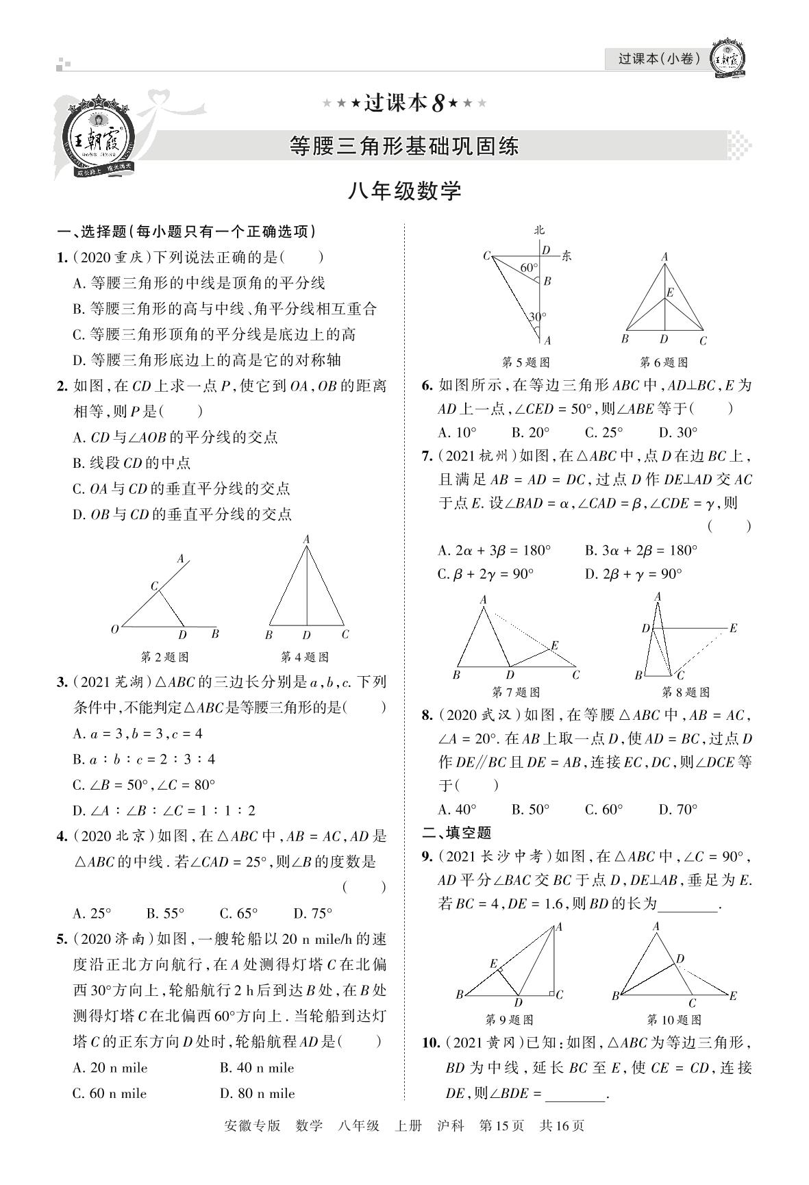 王朝霞期末过课本——等腰三角形基础巩固练八年级上册数学(沪科版)【8】
