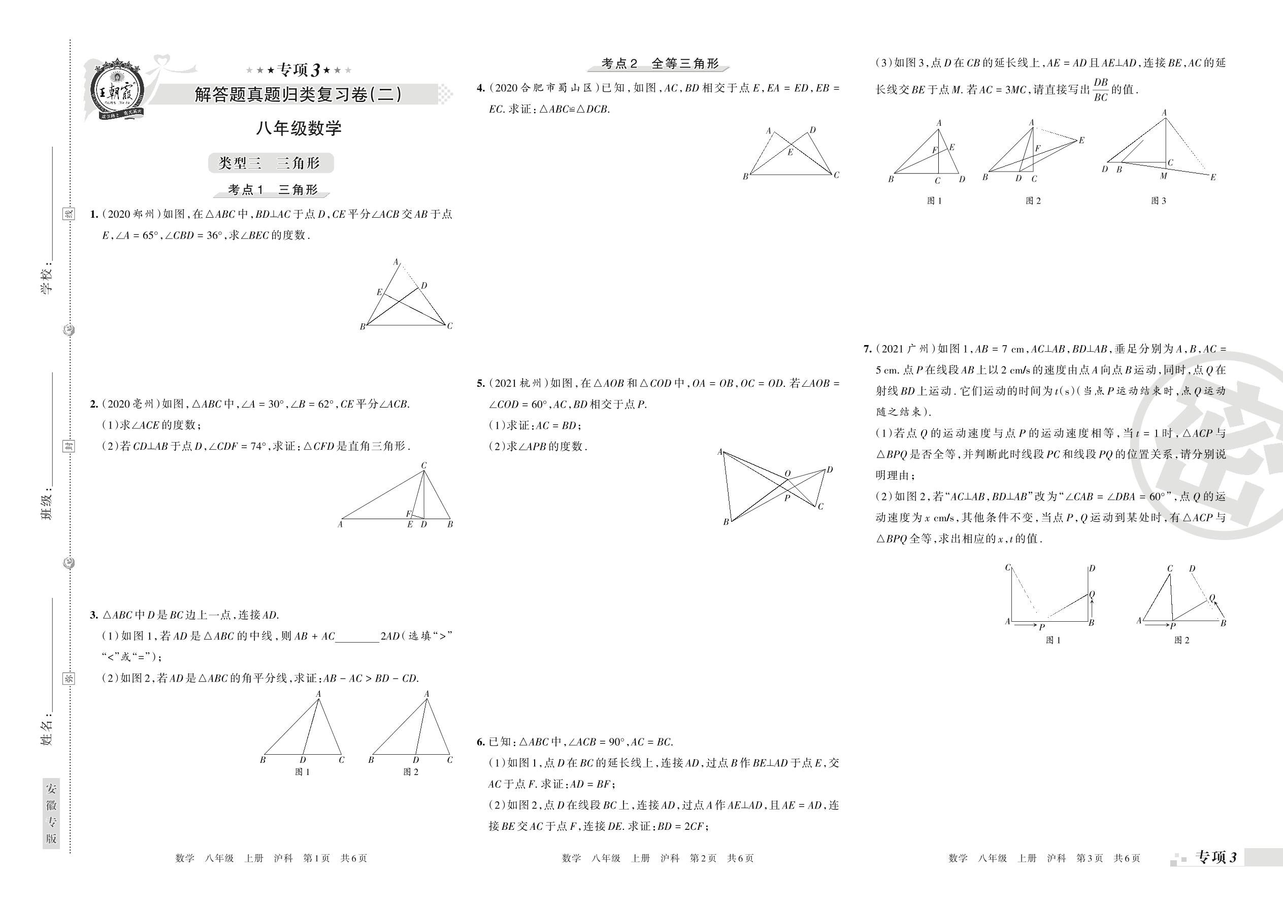 王朝霞期末专项卷——解答题真题归类复习卷(二)八年级上册数学(沪科版)【3】