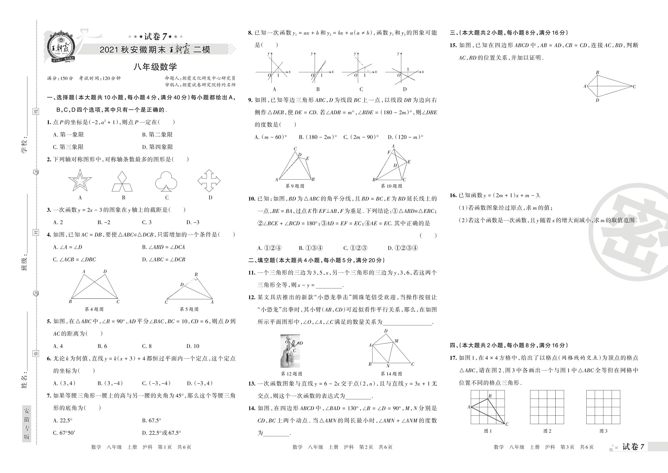 王朝霞期末模拟卷八年级上册数学(沪科版)【7】