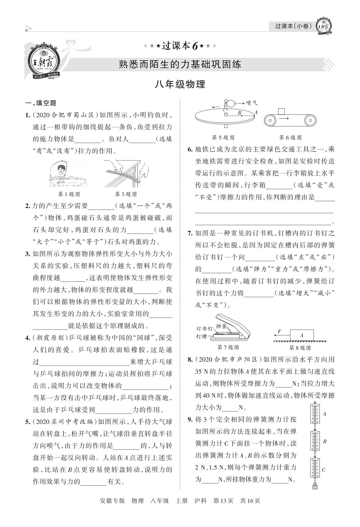 王朝霞期末过课本——熟悉而陌生的力基础巩固练八年级上册物理(沪科版)【6】