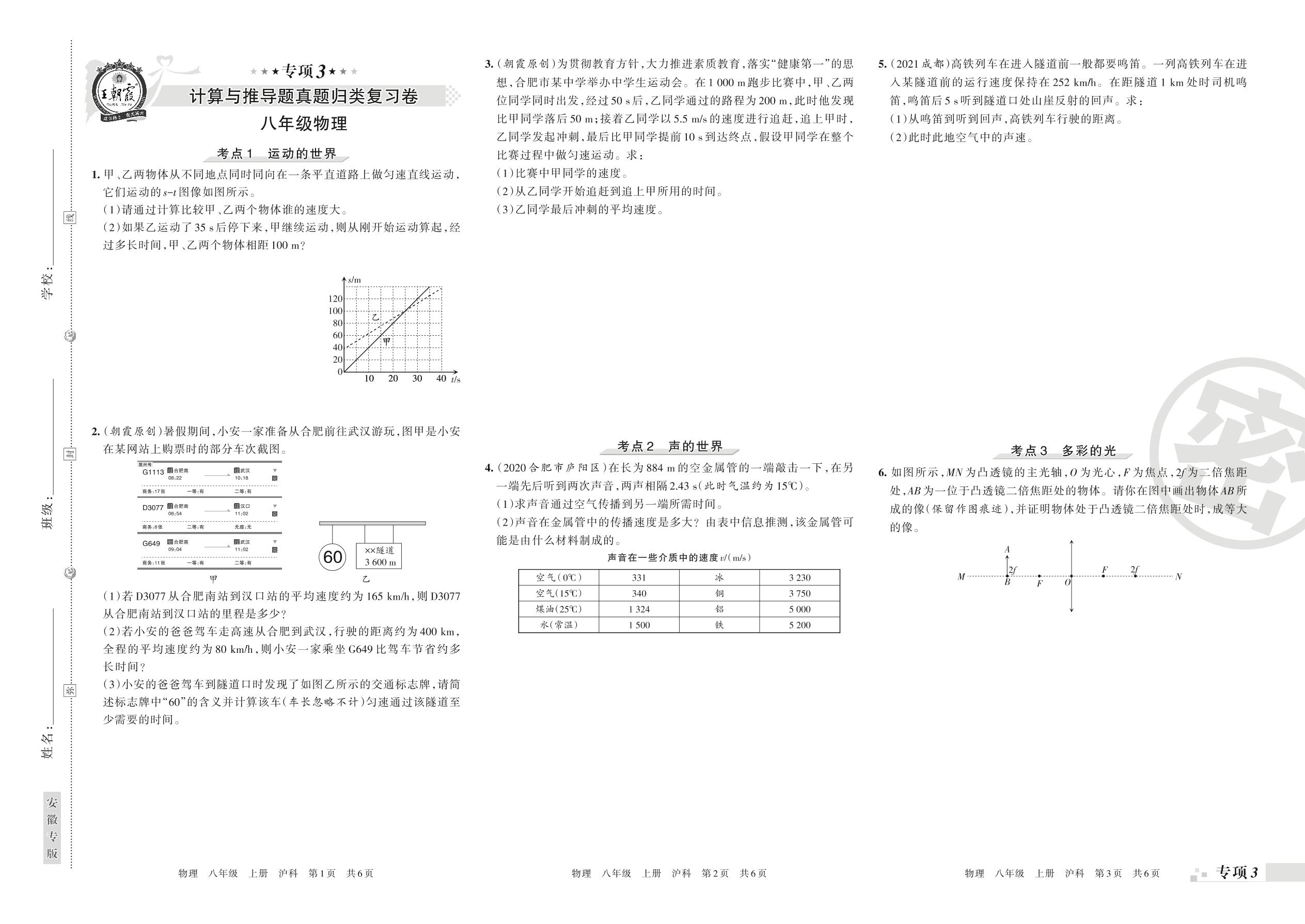 王朝霞期末专项卷——计算与推导题真题归类复习卷八年级上册物理(沪科版)【3】