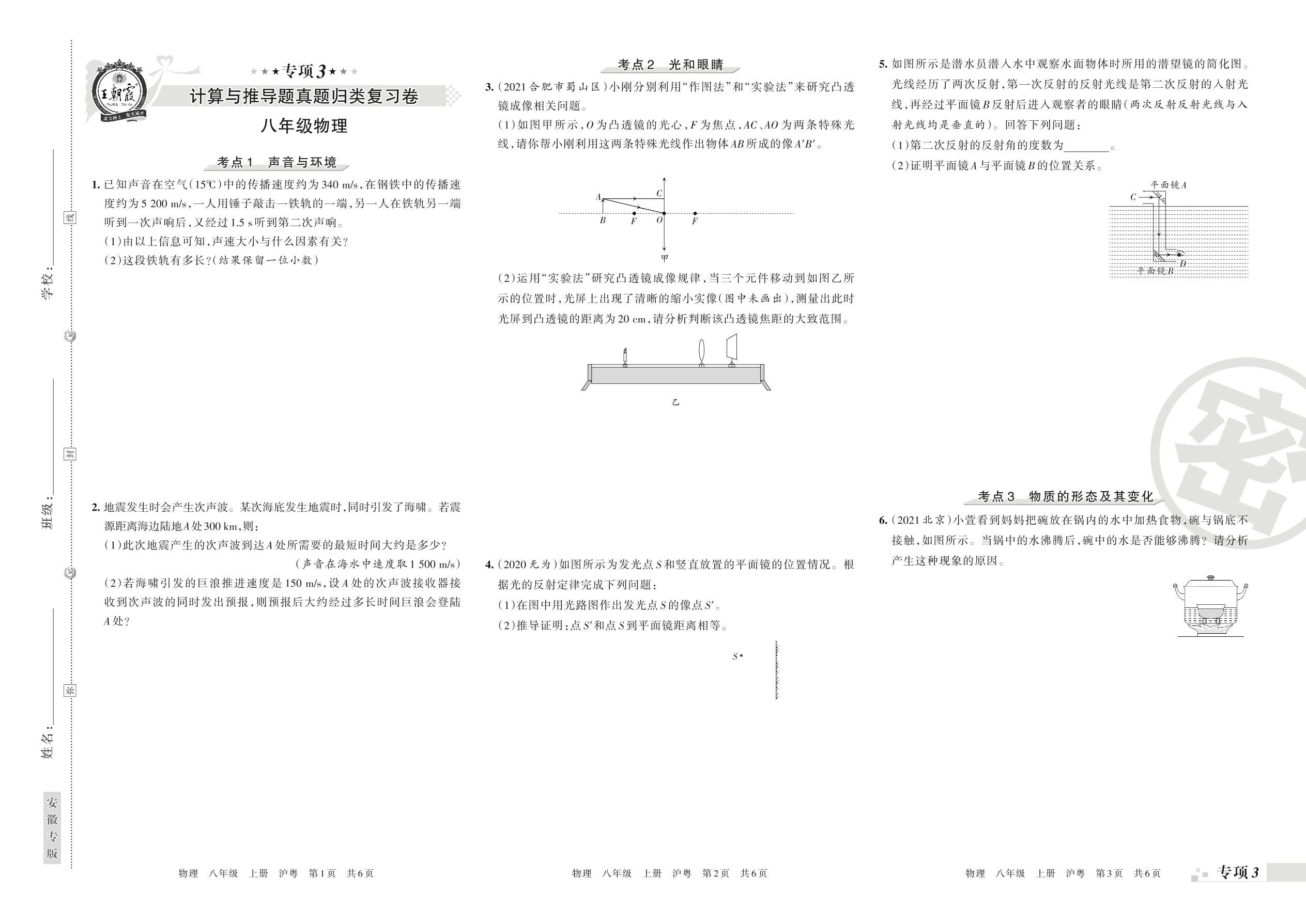王朝霞期末专项卷——计算与推导题真题归类复习卷八年级上册物理(沪粤版)【3】