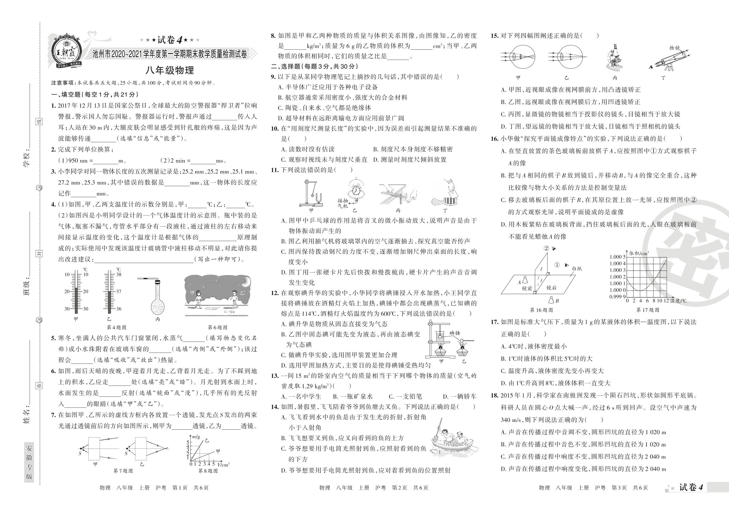 池州市2020~2021学年度第一学期期末教学质量检测试卷八年级物理(沪粤版)【4】