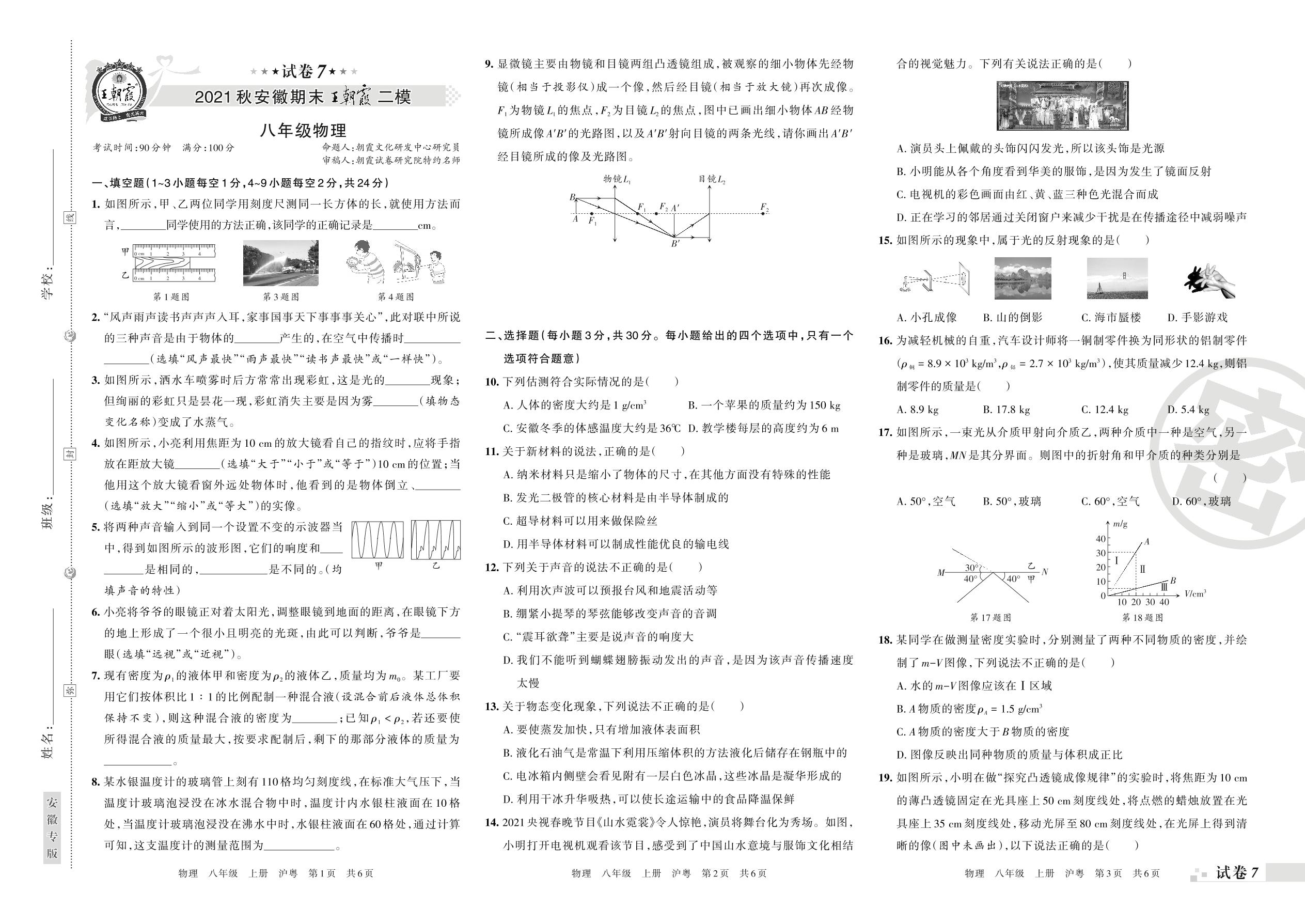 王朝霞期末模拟卷八年级上册物理(沪粤版)【7】