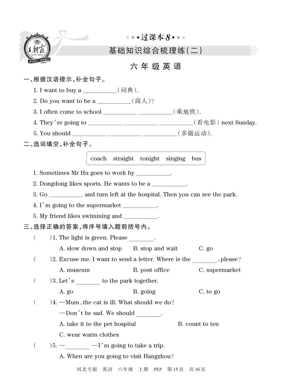 王朝霞期末过课本——基础知识综合梳理练(二)六年级上册英语(人教PEP版)【8】
