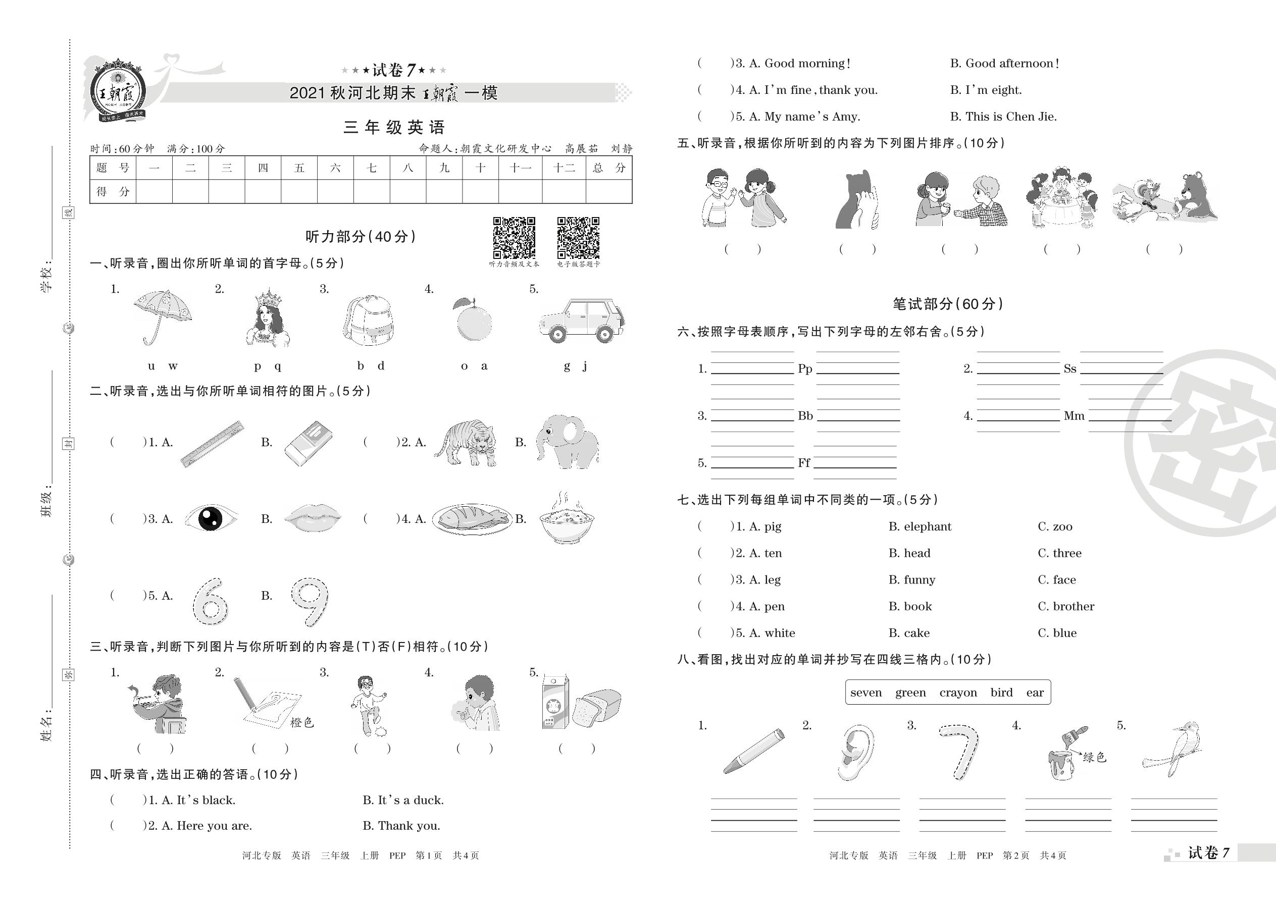 王朝霞期末模拟卷三年级上册英语(人教PEP版)_R211222152710119【7】