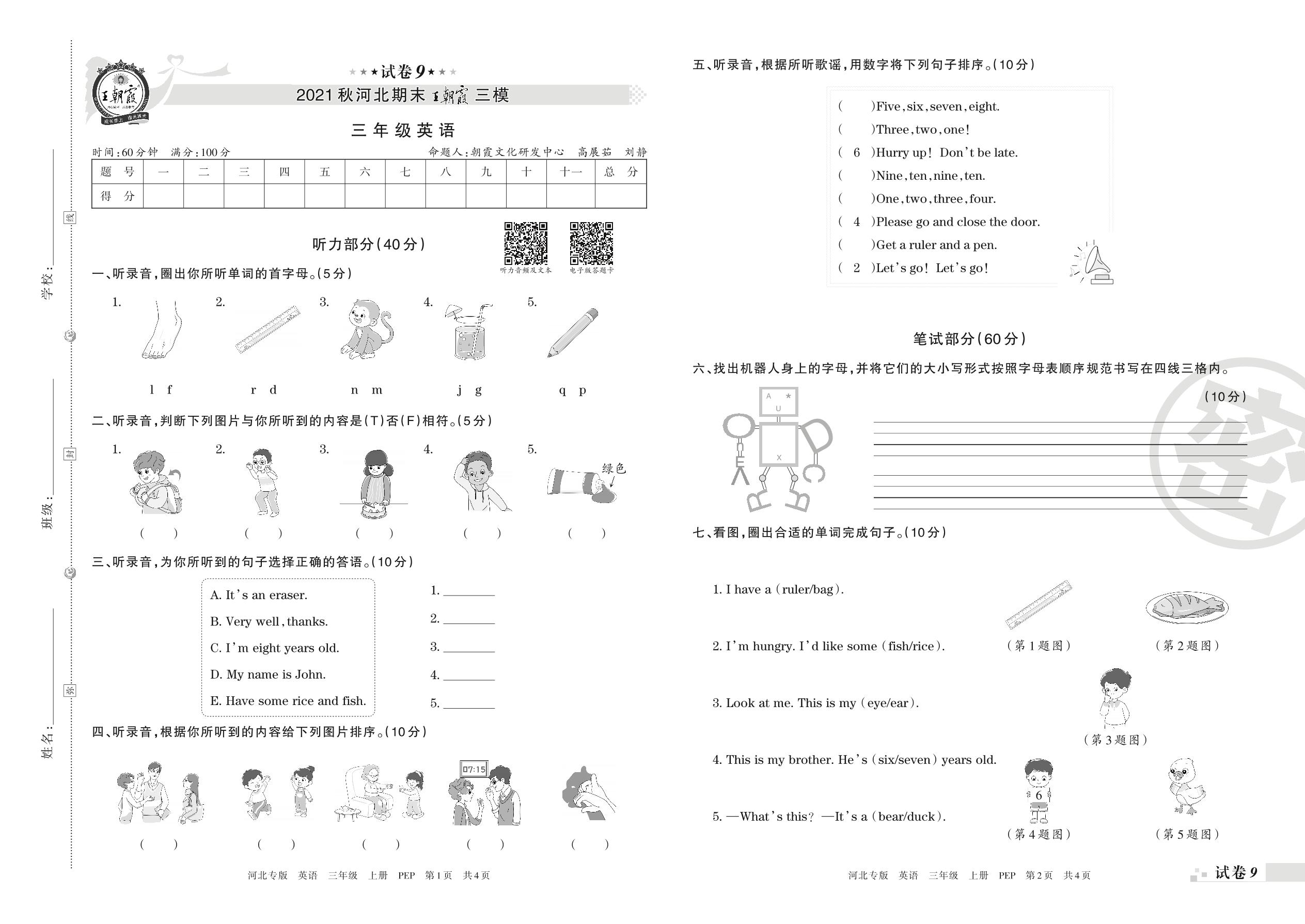 王朝霞期末模拟卷三年级上册英语(人教PEP版)_R211222152710789【9】