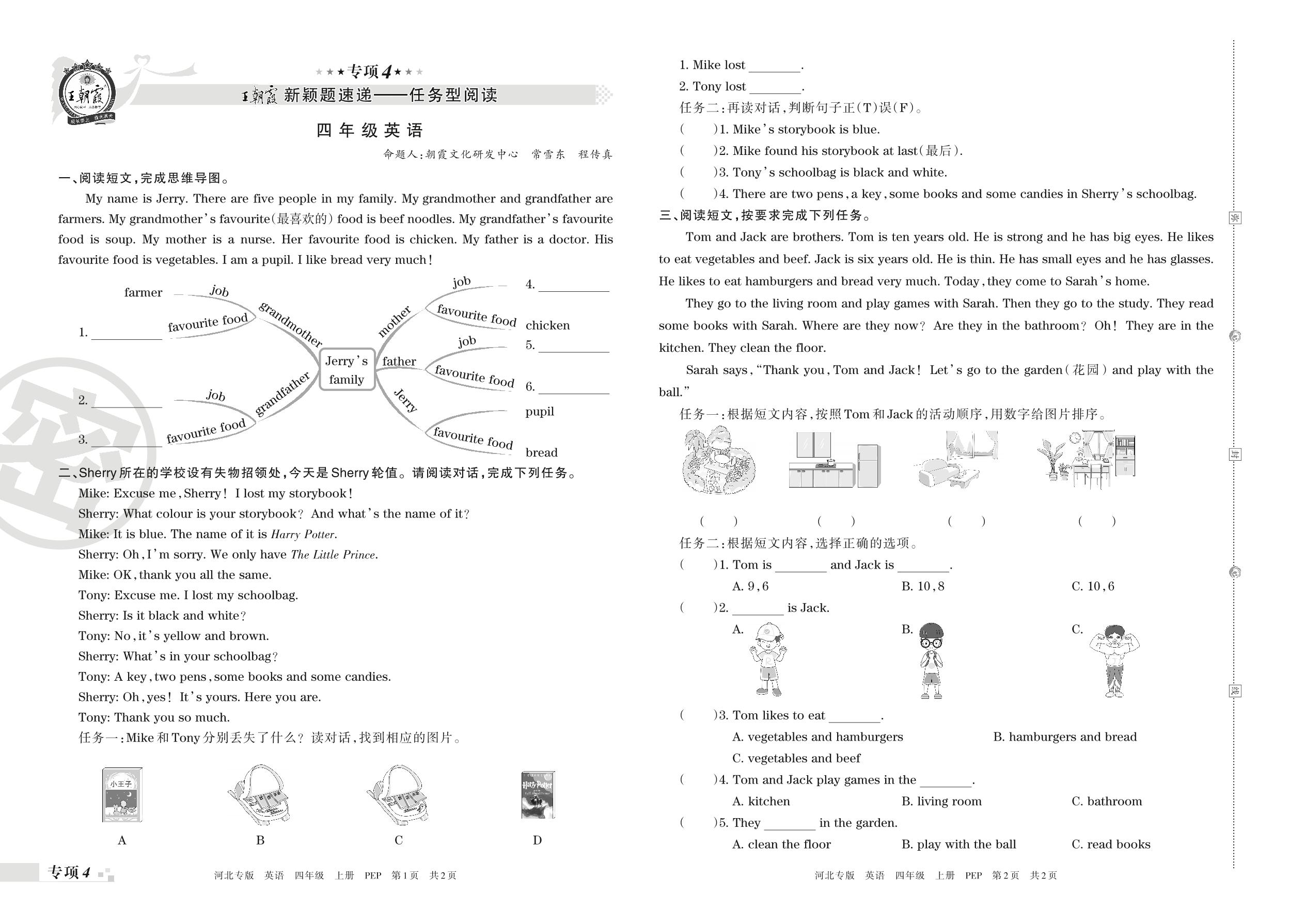 王朝霞期末专项卷——新颖题速递:任务型阅读四年级上册英语(人教PEP版)_R211222153246771【4】