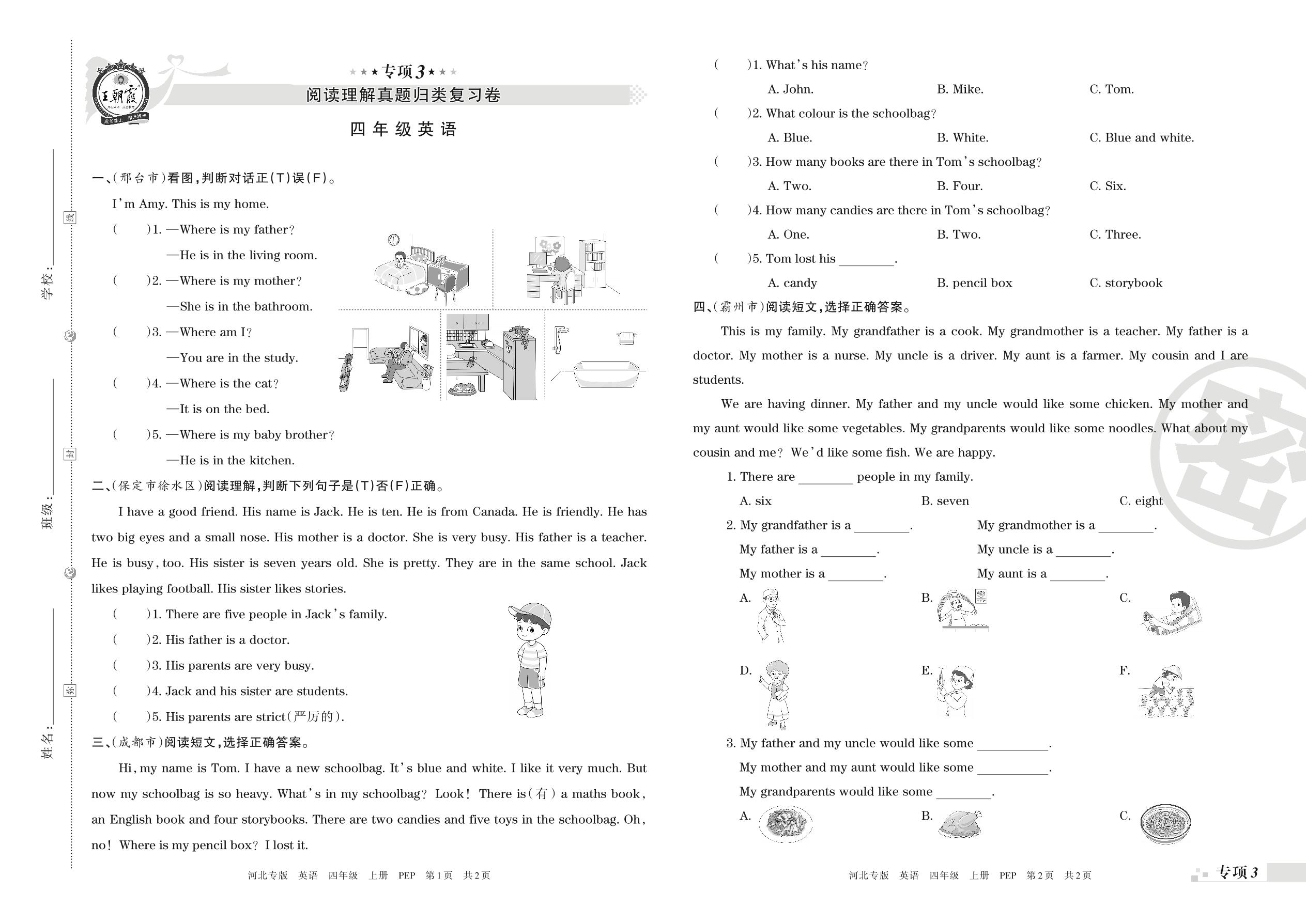 王朝霞期末专项卷——阅读理解真题归类复习卷四年级上册英语(人教PEP版)_R211222153246562【3】
