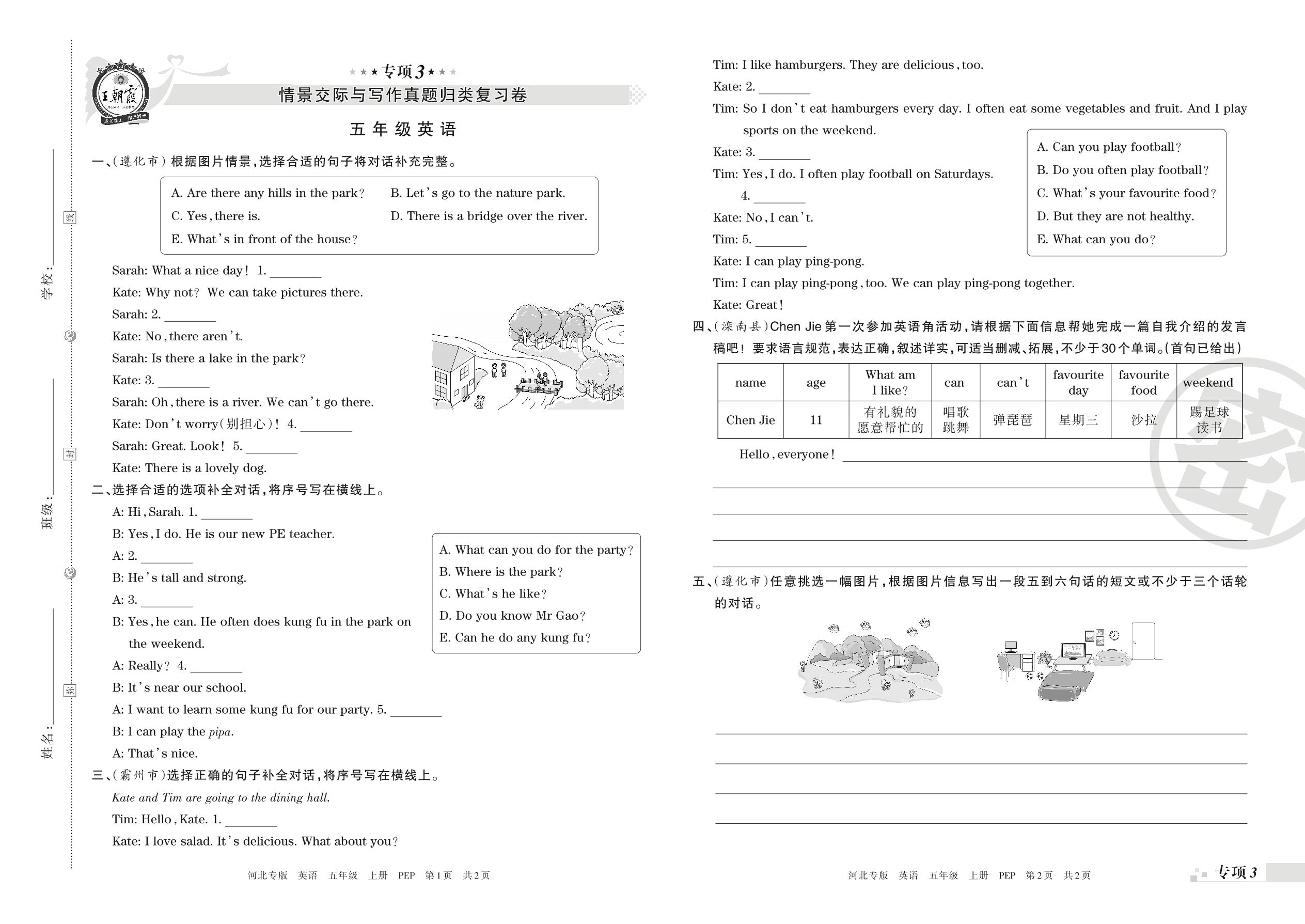 王朝霞期末专项卷——情景交际与写作真题归类复习卷五年级上册英语(人教PEP版)【3】