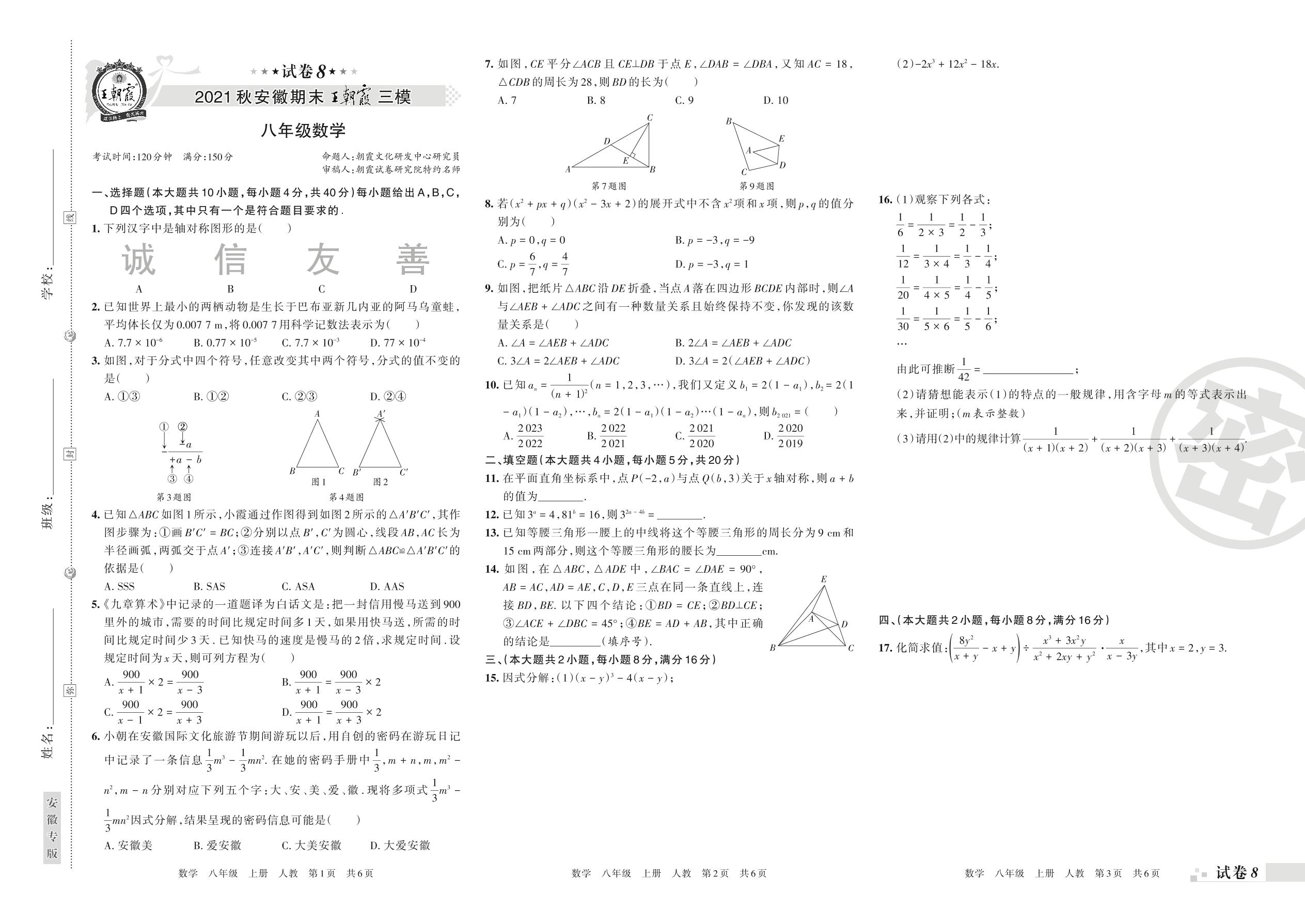 王朝霞期末模拟卷八年级上册数学(人教版)_R211222154753147【8】