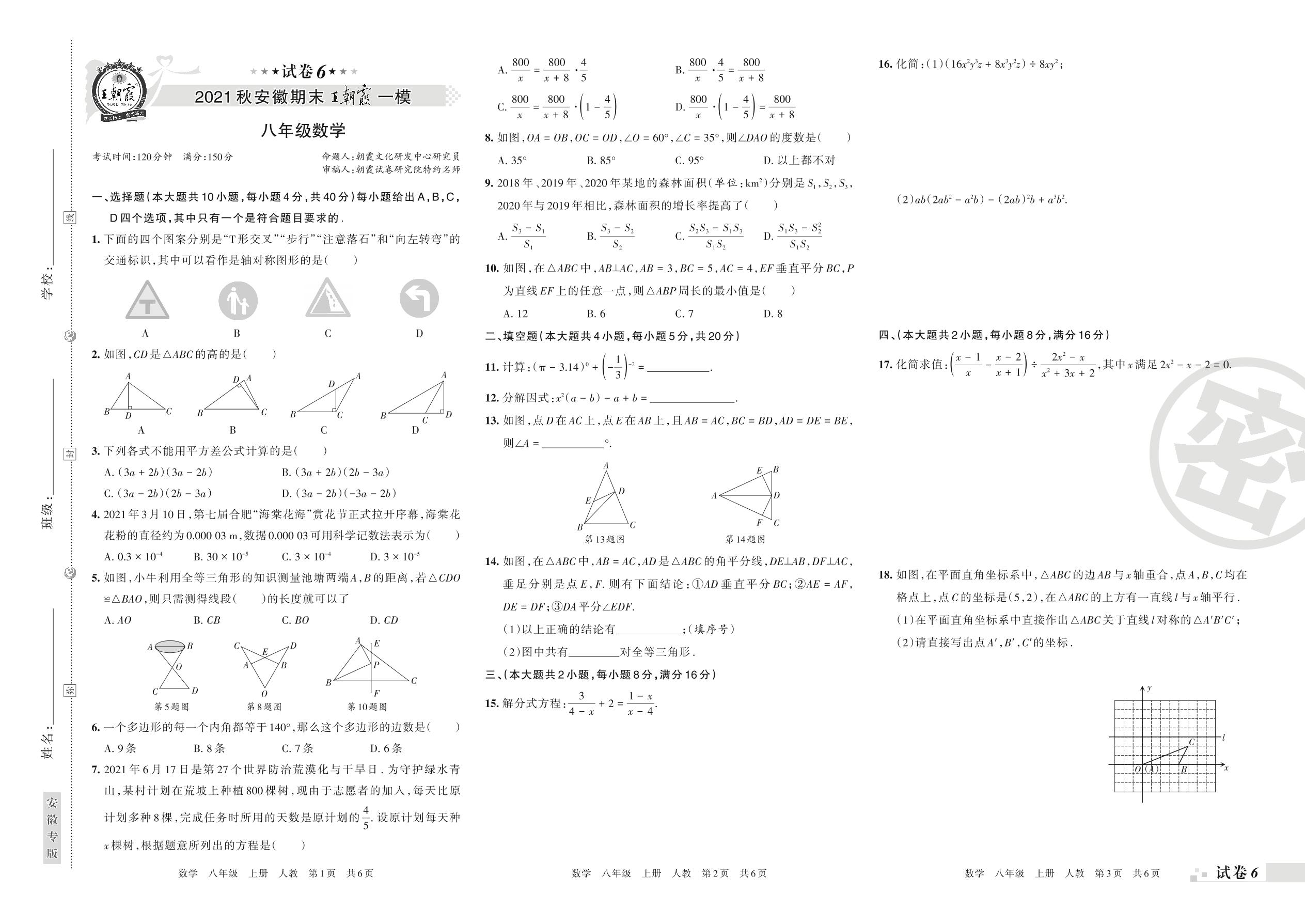 王朝霞期末模拟卷八年级上册数学(人教版)_R211222154753153【6】