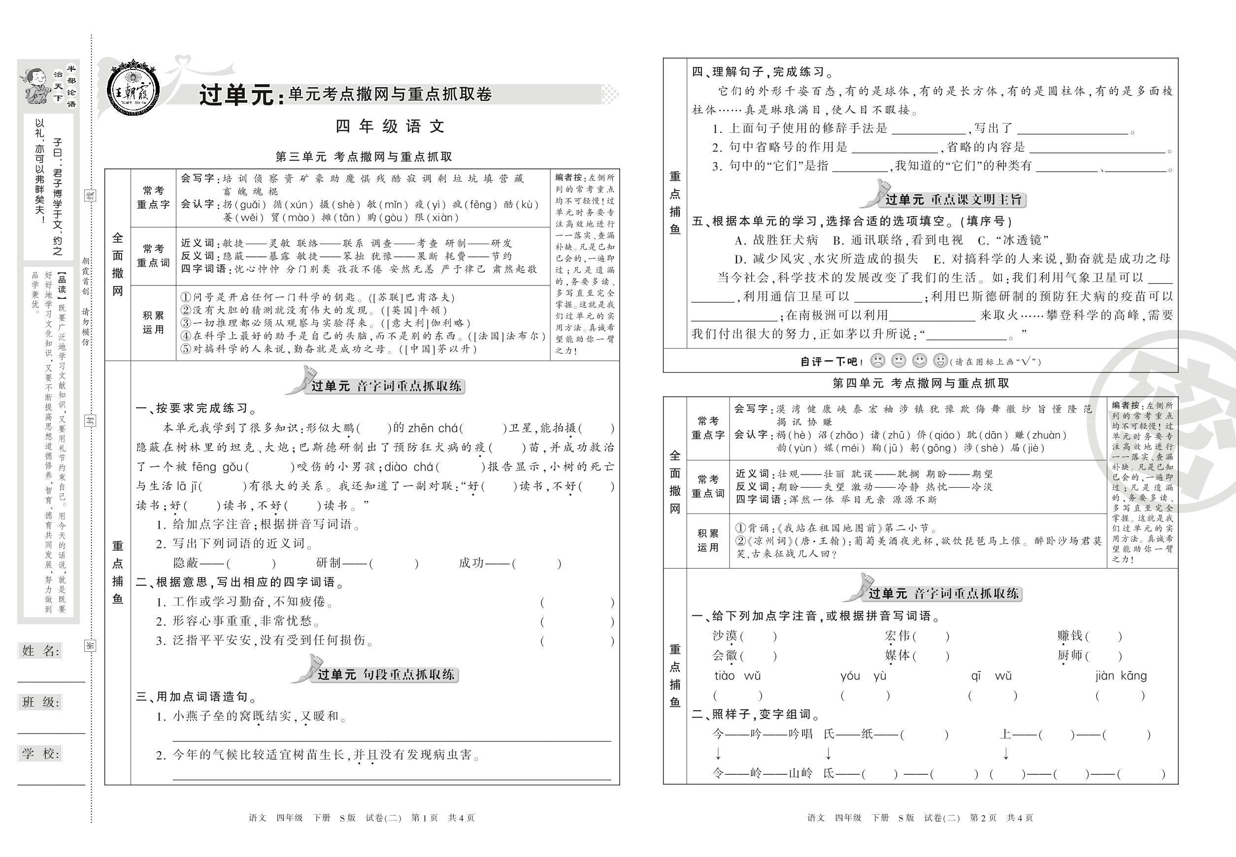 王朝霞期末过单元四年级下册语文(S版)_R210801212647【2】