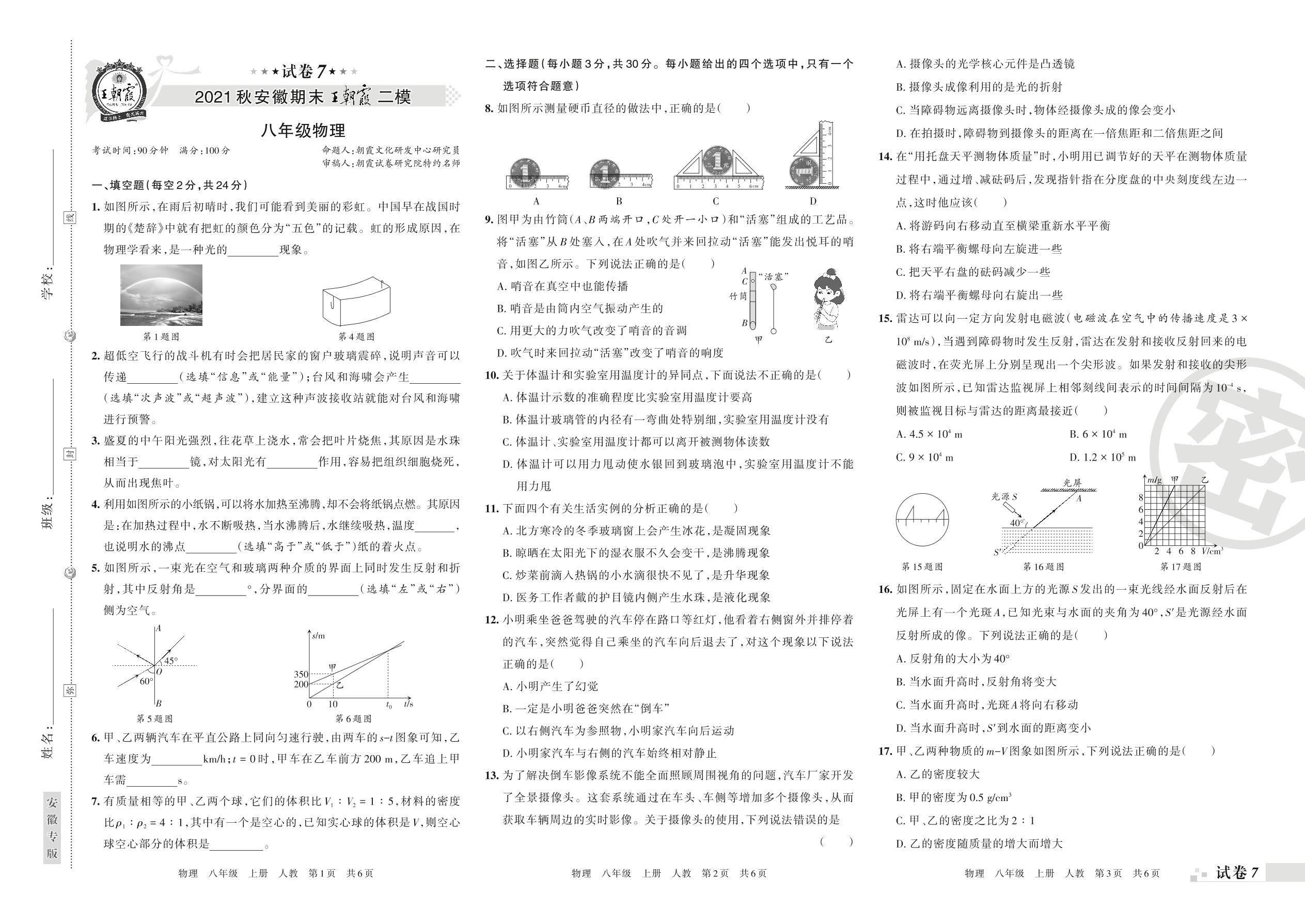 王朝霞期末模拟卷八年级上册物理(人教版)【7】