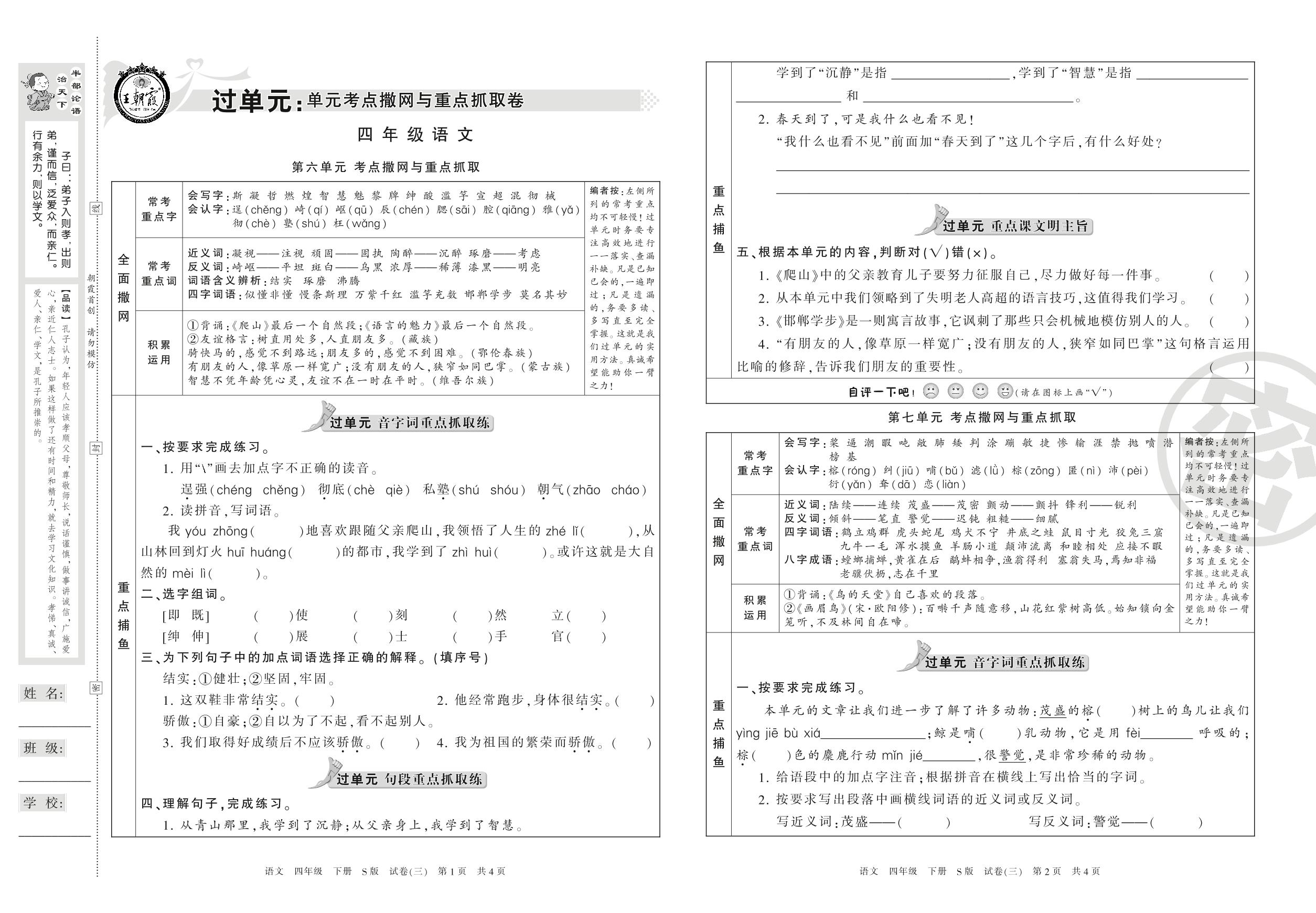 王朝霞期末过单元四年级下册语文(S版)_R210801212656【3】