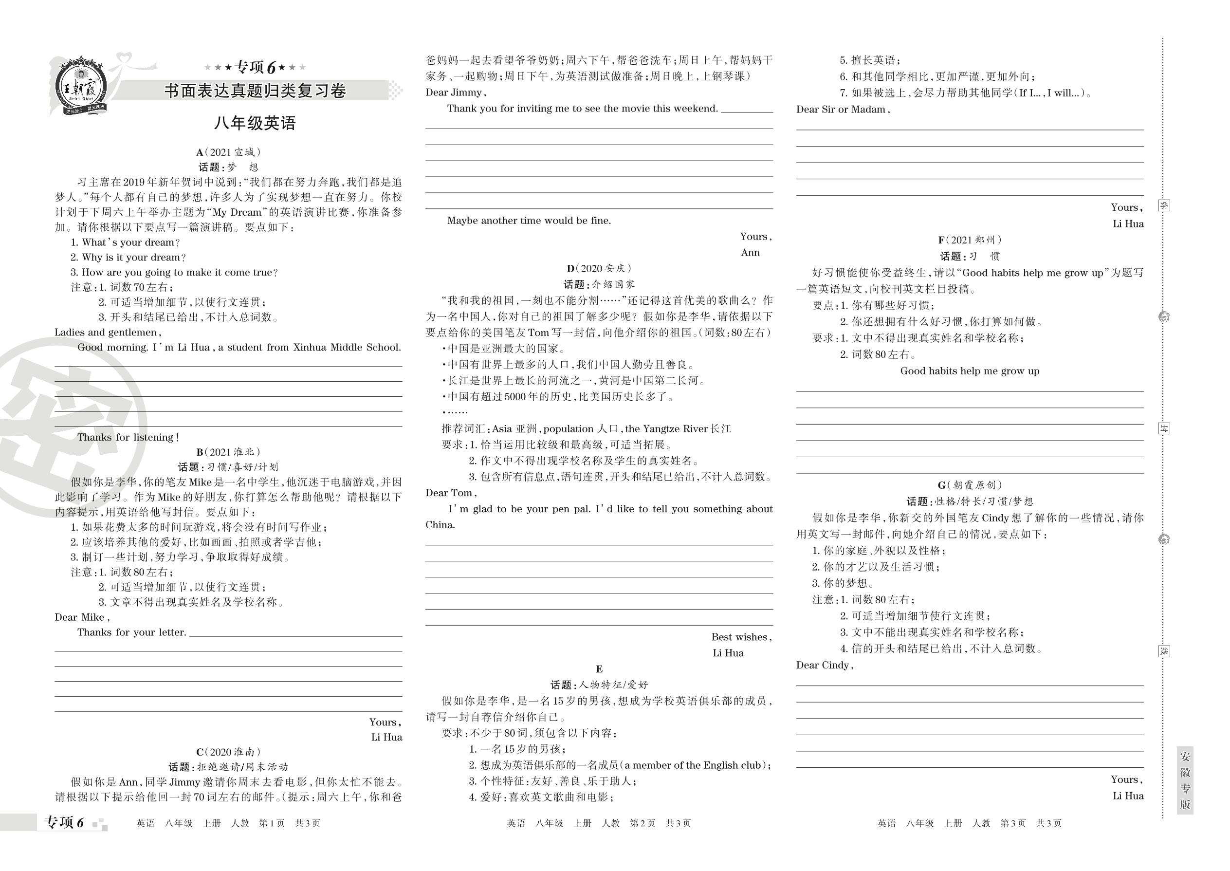 王朝霞期末专项卷——书面表达真题归类复习卷八年级上册英语(人教版)【6】