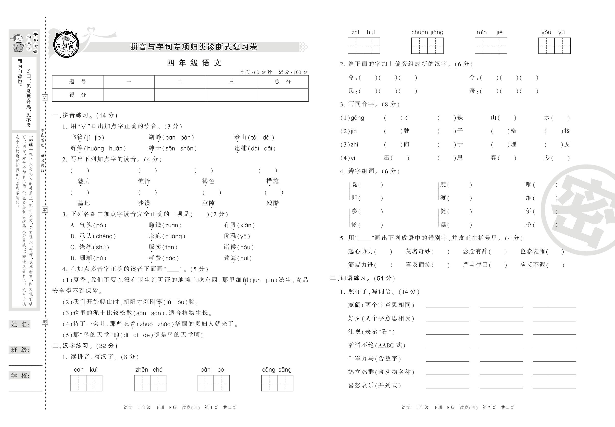 王朝霞期末专项卷四年级下册语文(S版)_R210801212706【4】