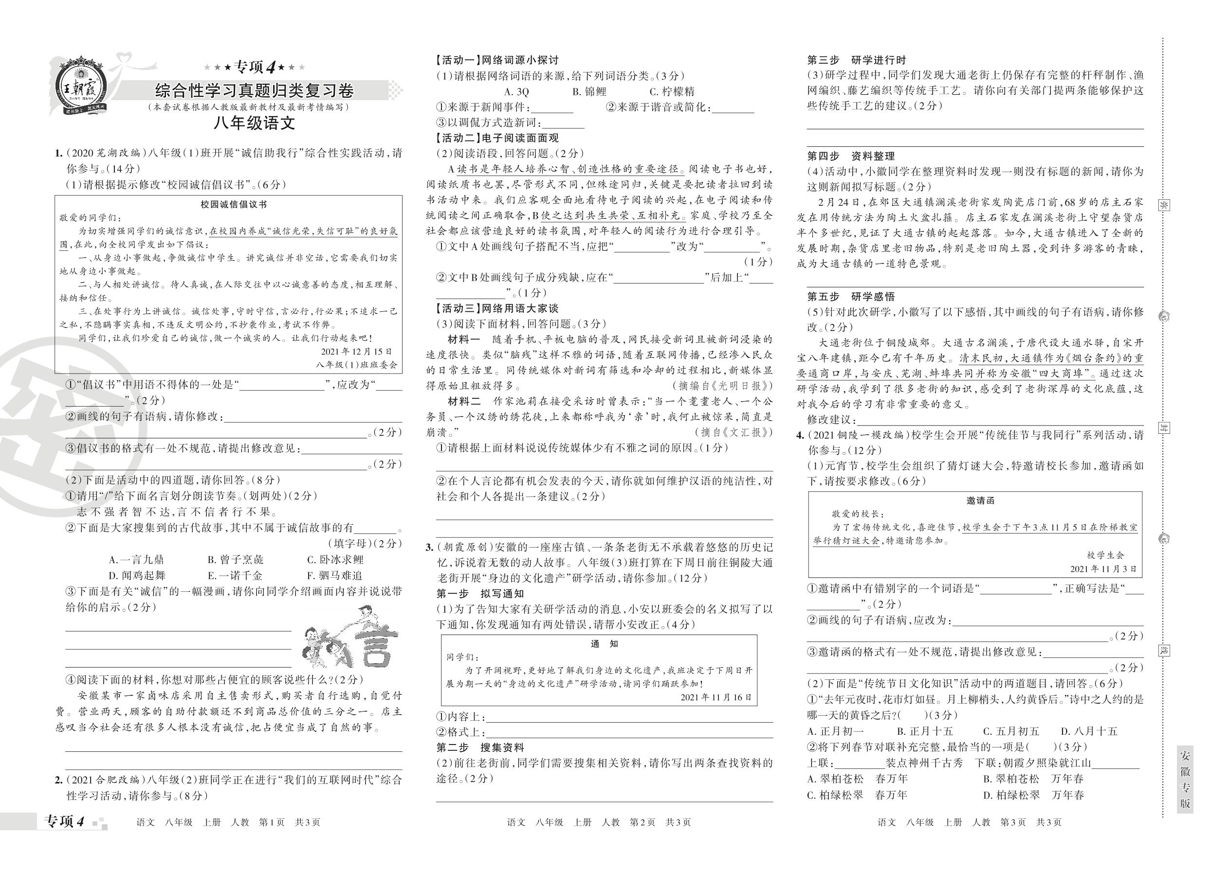 王朝霞期末专项卷——综合性学习真题归类复习卷八年级上册语文(人教版)_R211222171009908【4】