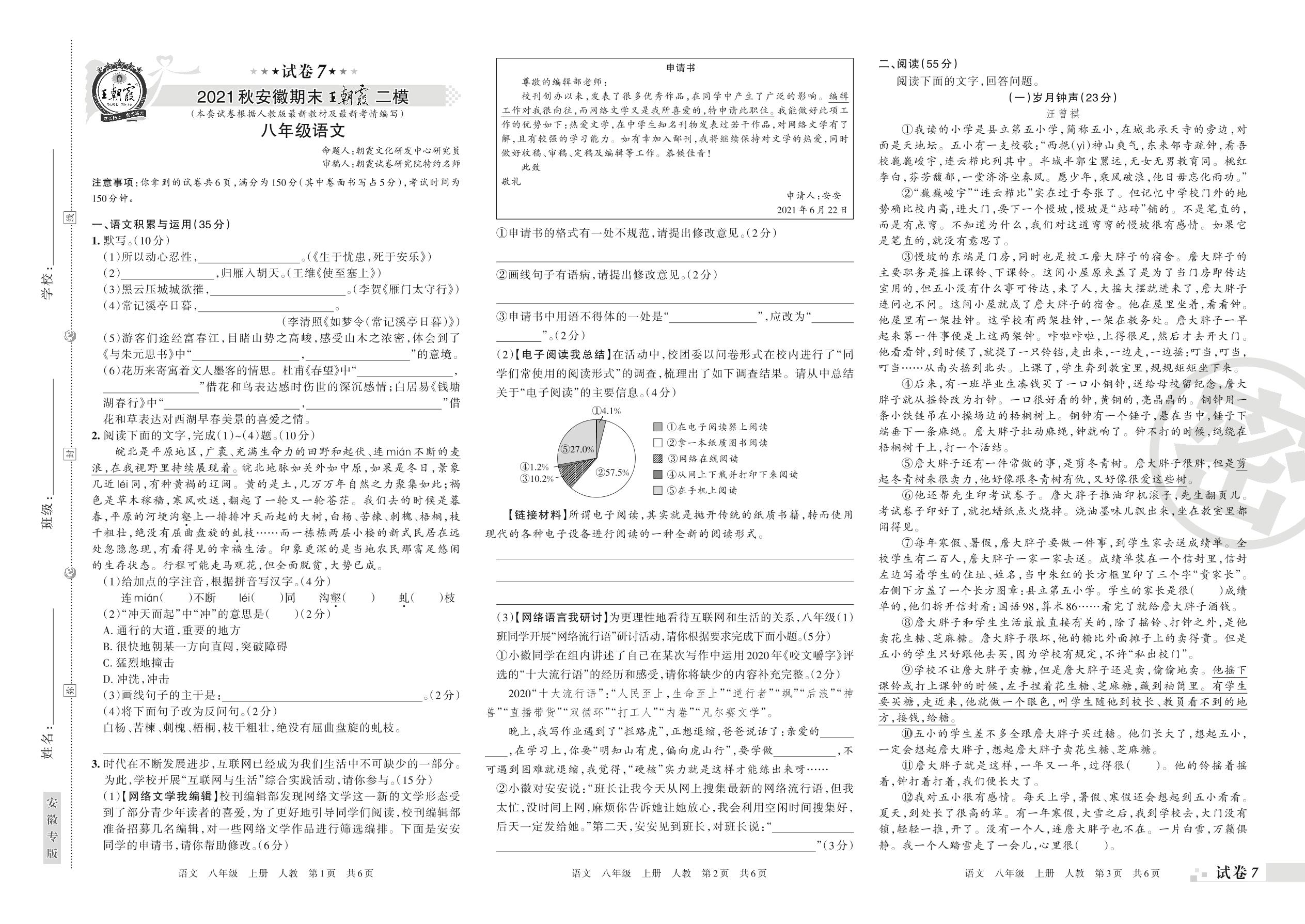 王朝霞期末模拟卷八年级上册语文(人教版)【7】
