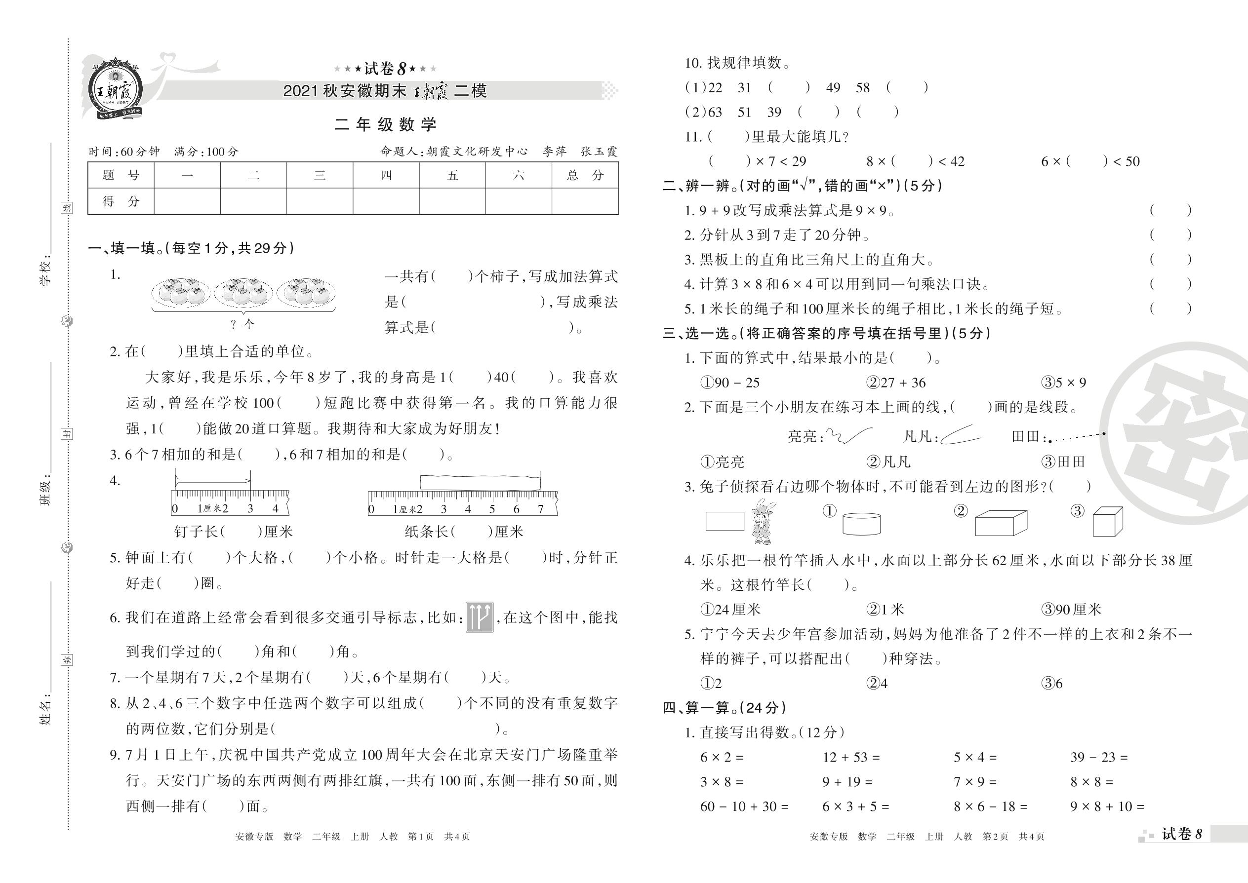 王朝霞期末模拟卷二年级上册数学(人教版)_R211222172127506【8】