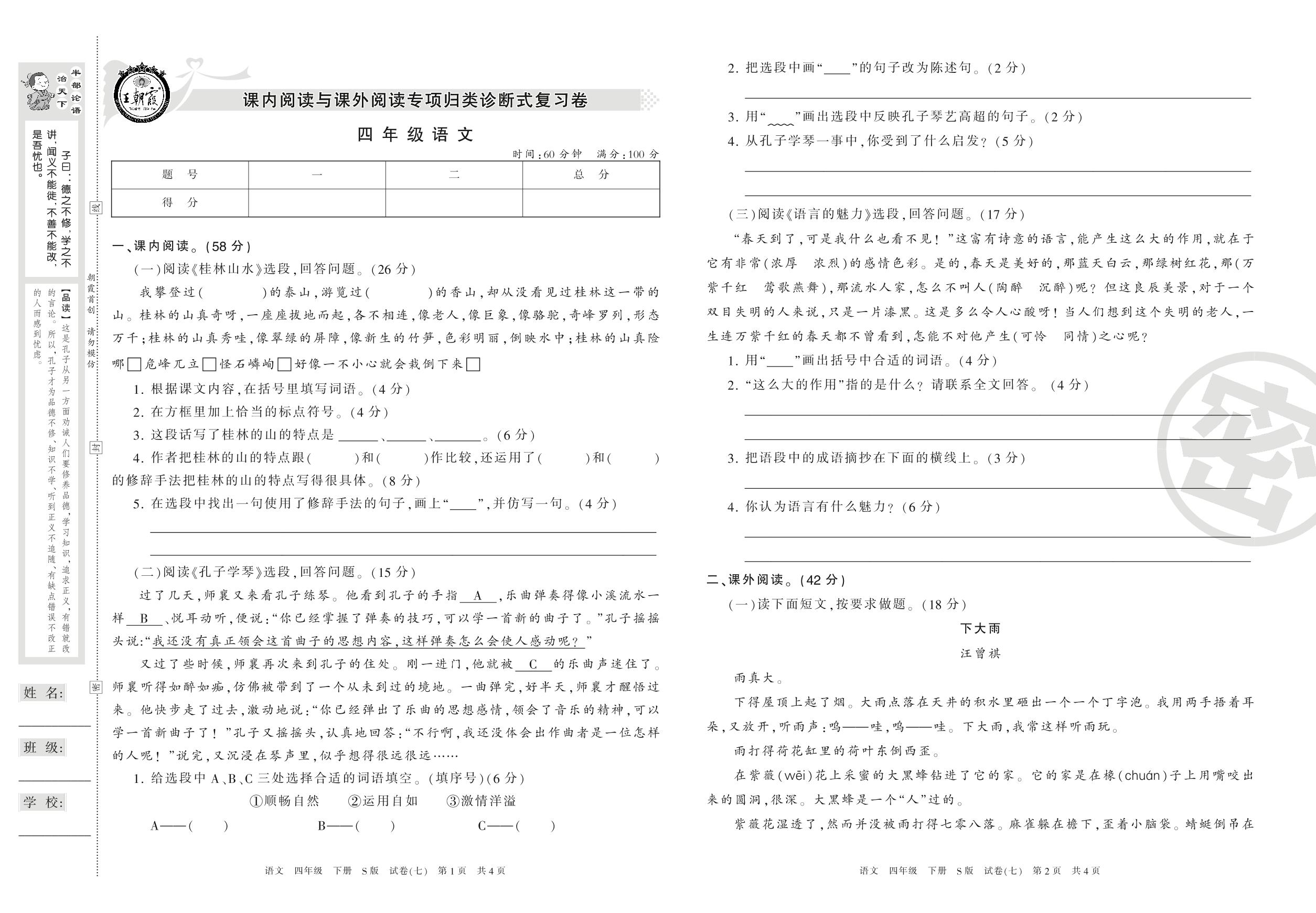王朝霞期末专项卷四年级下册语文(S版)_R210801212721【7】