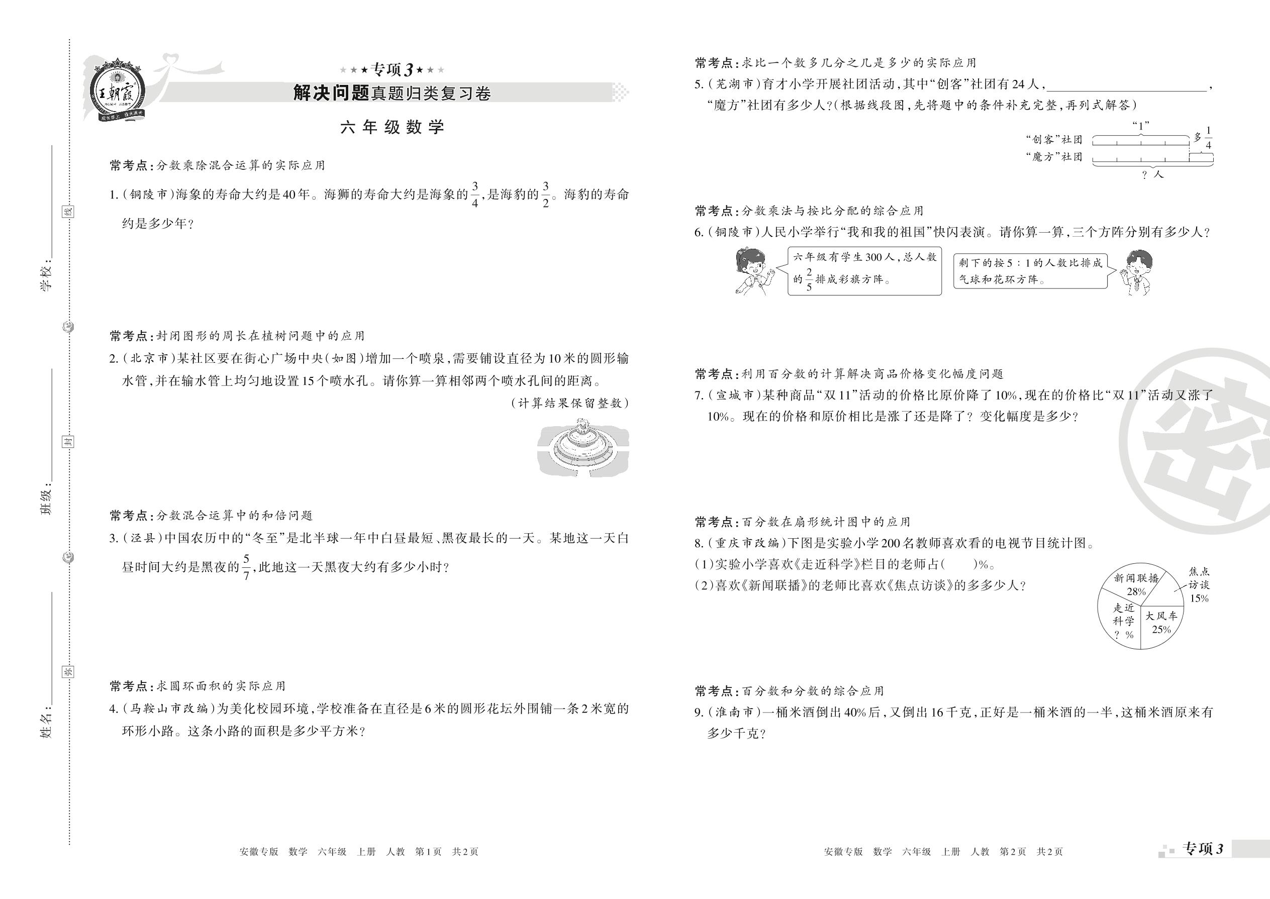 王朝霞期末专项卷——解决问题真题归类复习六年级上册数学(人教版)【3】