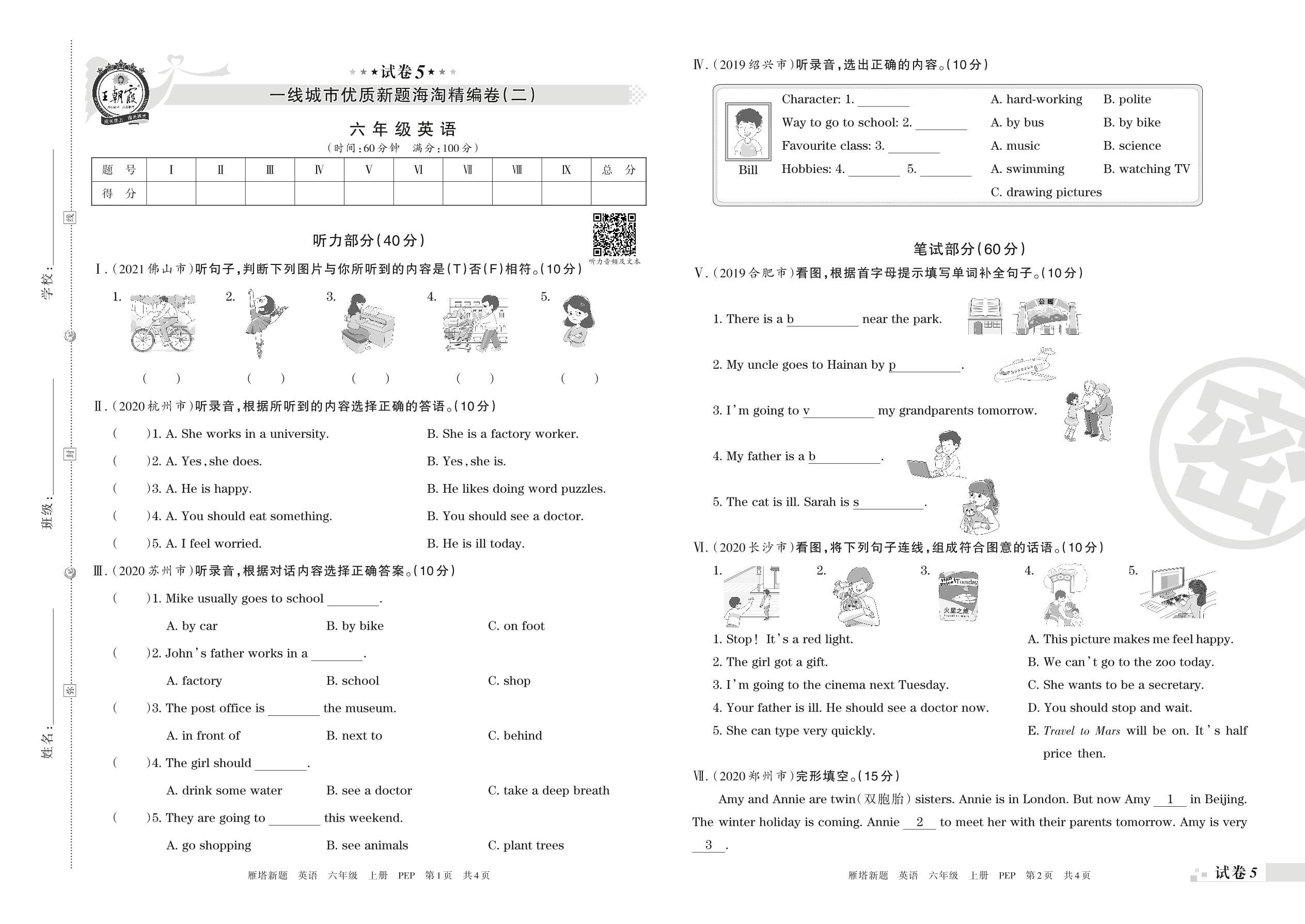 一线城市优质新题海淘精编卷(二)六年级上册英语(人教PEP版)【5】