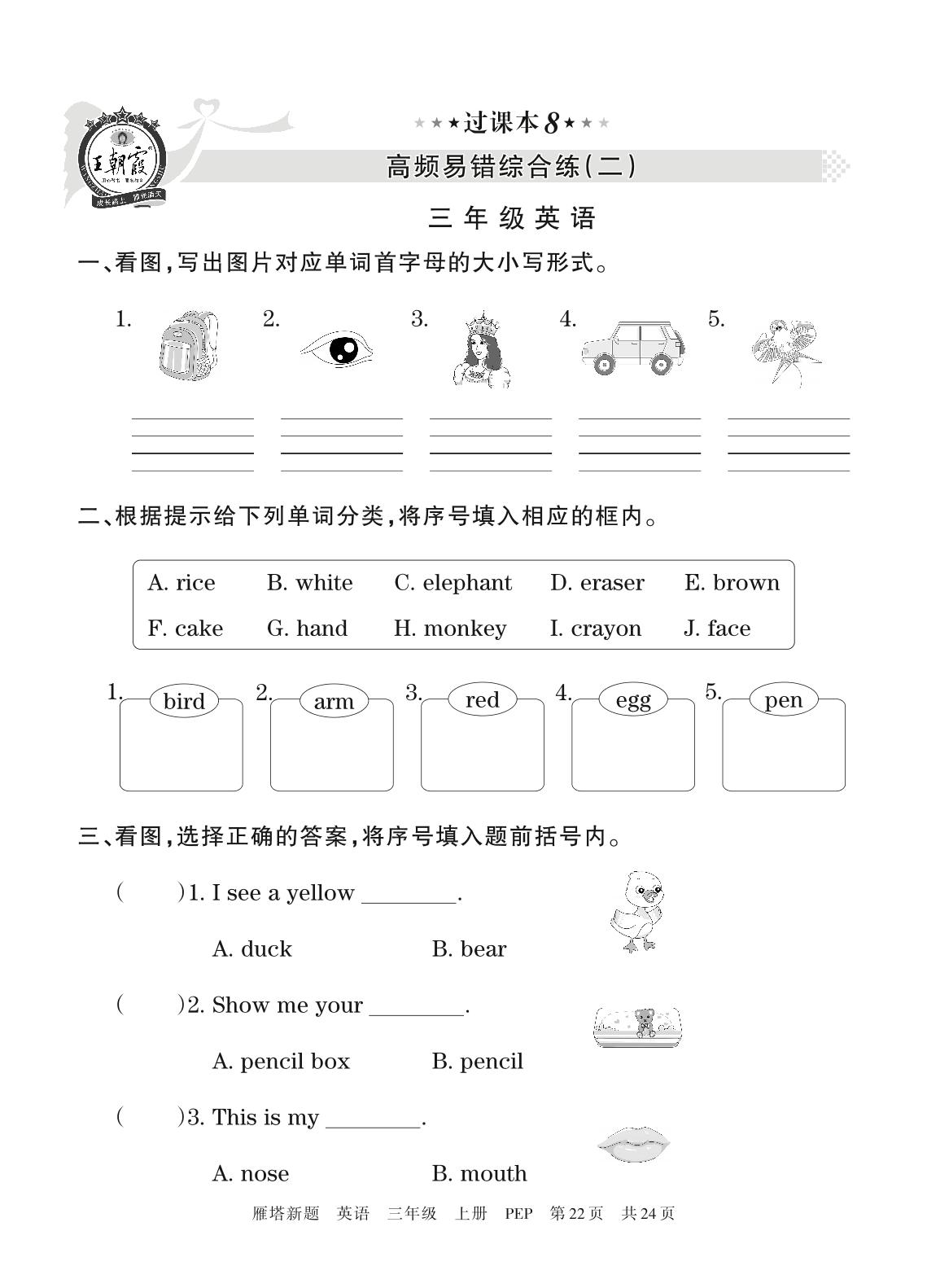 王朝霞期末过课本——高频易错综合练(二)三年级上册英语(人教PEP版)【8】