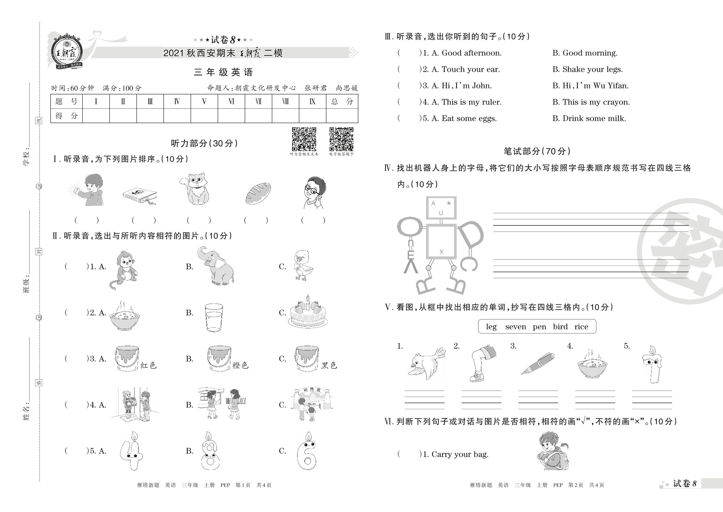 王朝霞期末模拟卷三年级上册英语(人教PEP版)_R211223091725361【8】
