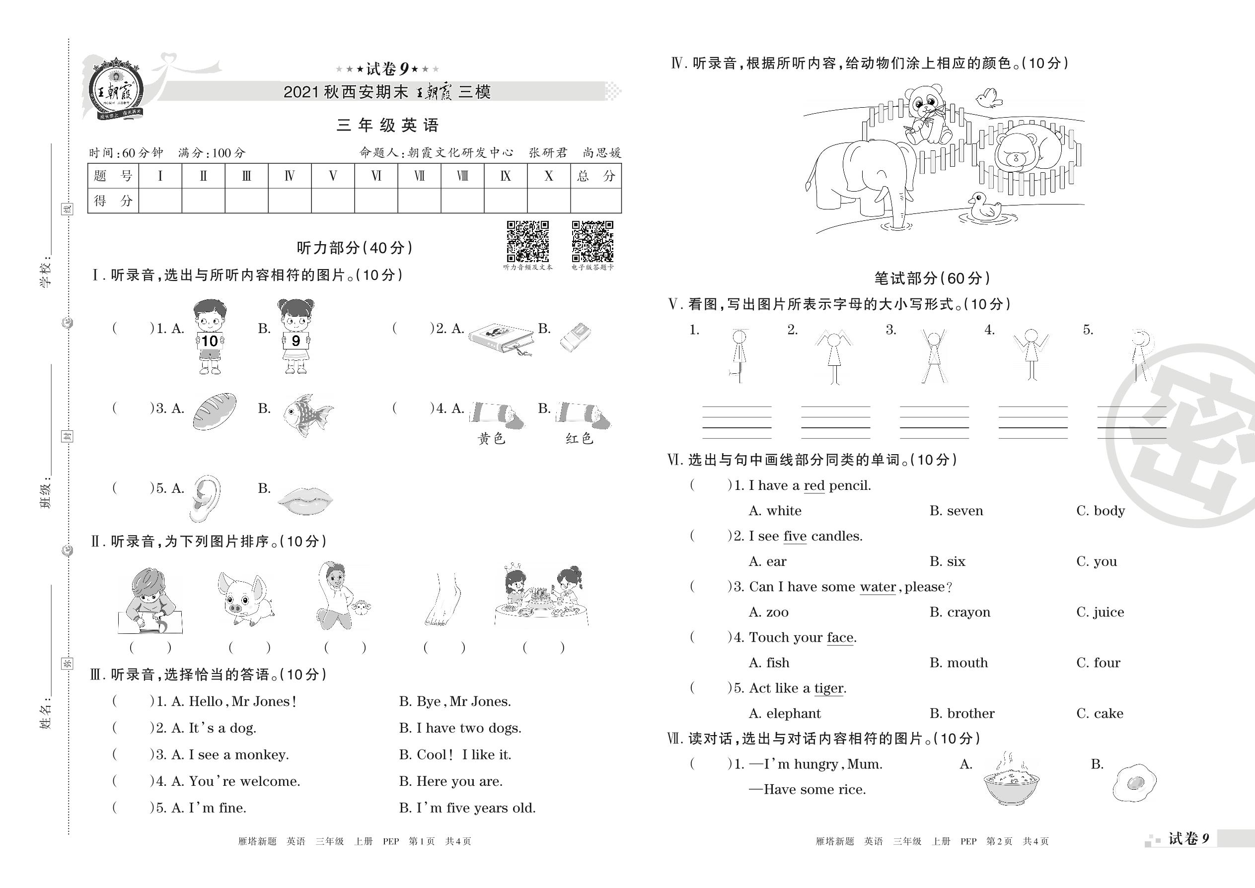 王朝霞期末模拟卷三年级上册英语(人教PEP版)_R211223091725824【9】