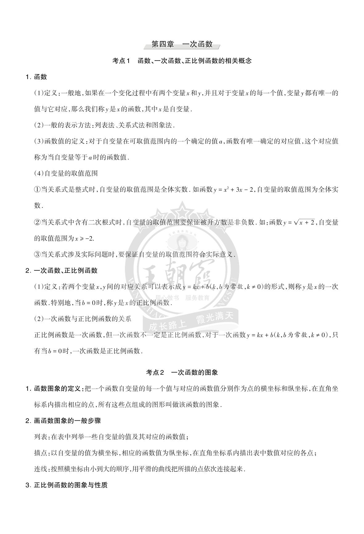 王朝霞期末知识梳理——第四章 一次函数八年级上册数学(北师版)【4】