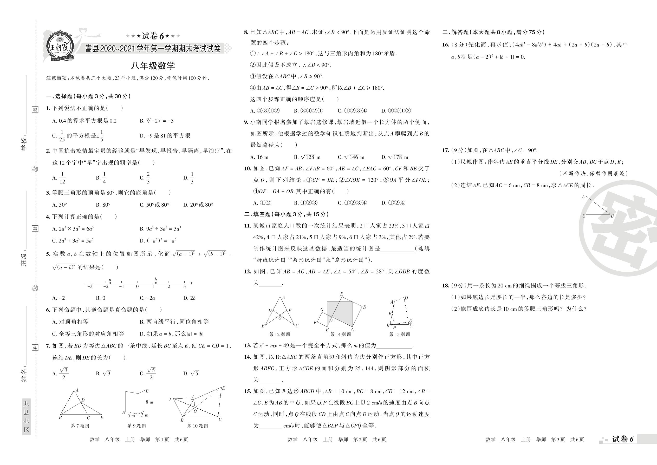 八年级数学华师版上册期末卷