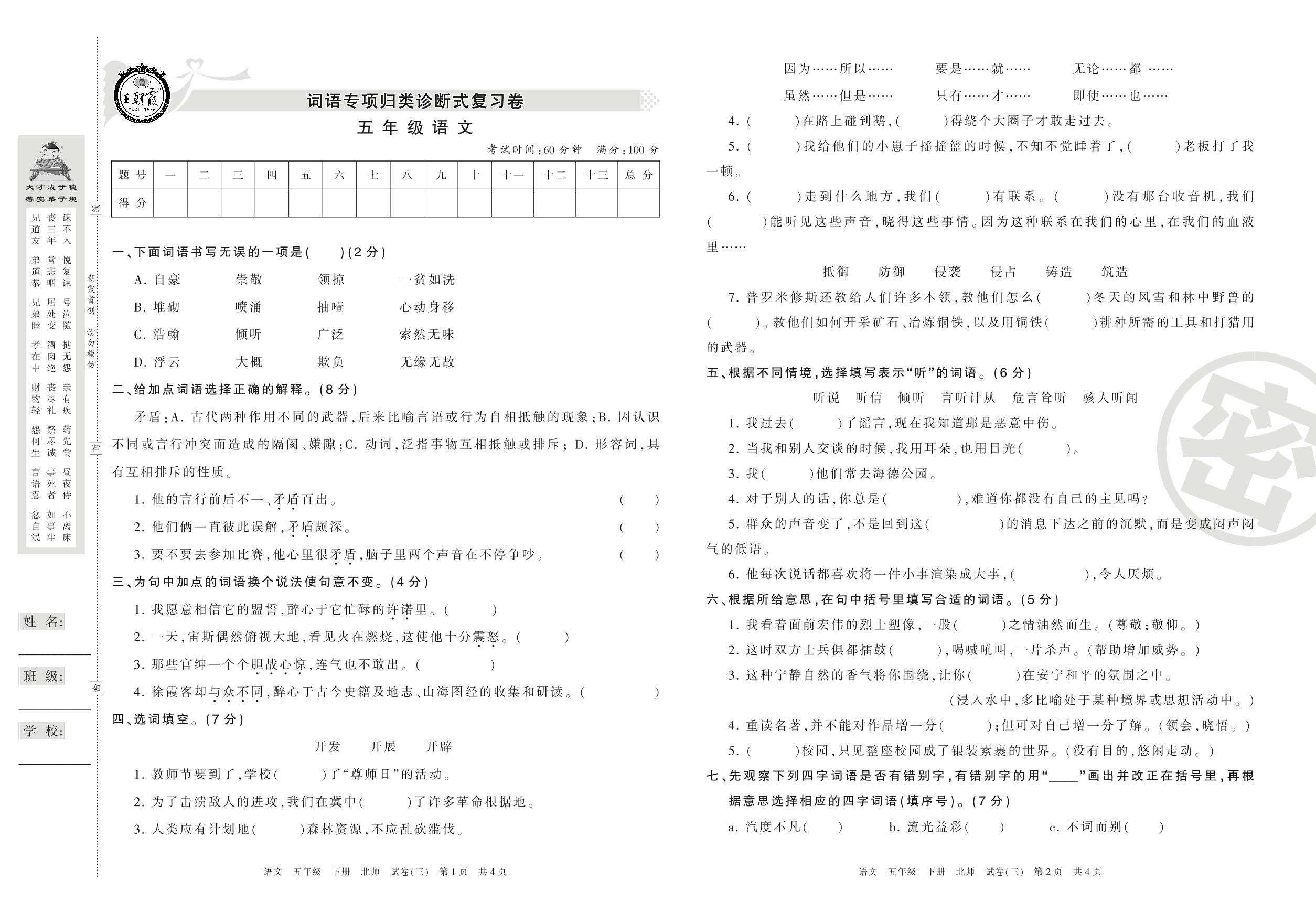 王朝霞期末专项卷五年级下册语文(北师版)_R210801212837【3】