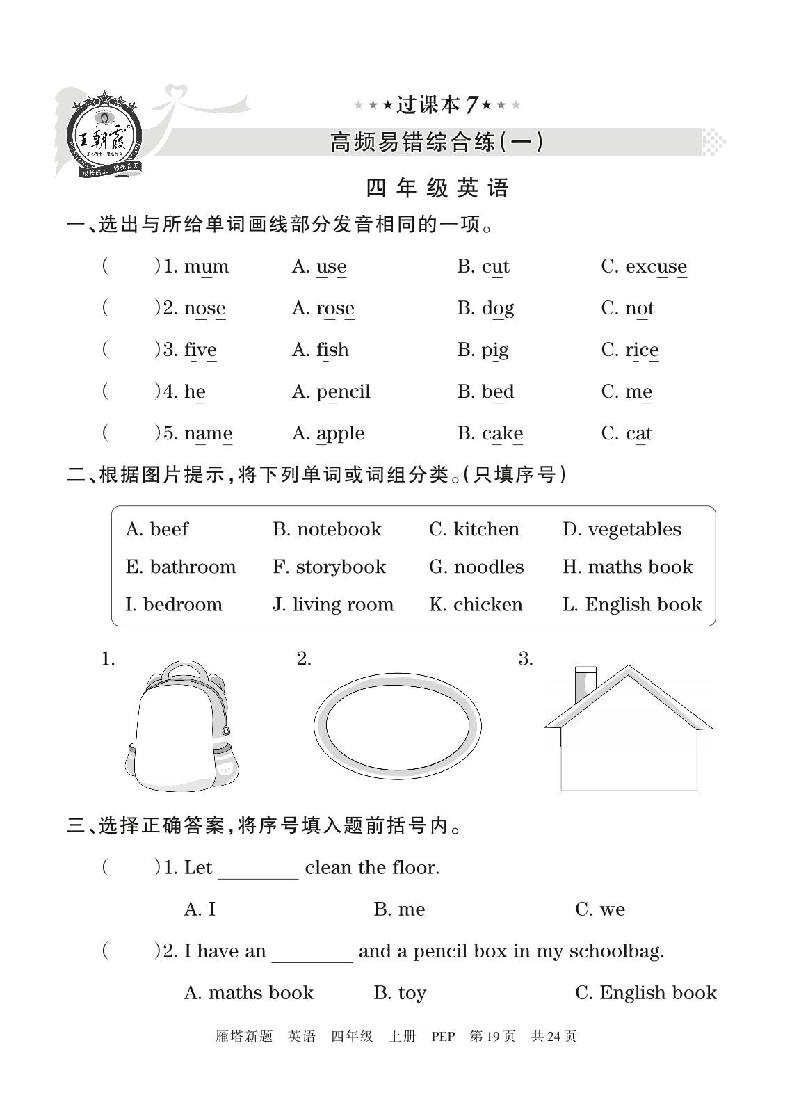 王朝霞期末过课本——高频易错综合练(一)四年级上册英语(人教PEP版)【7】