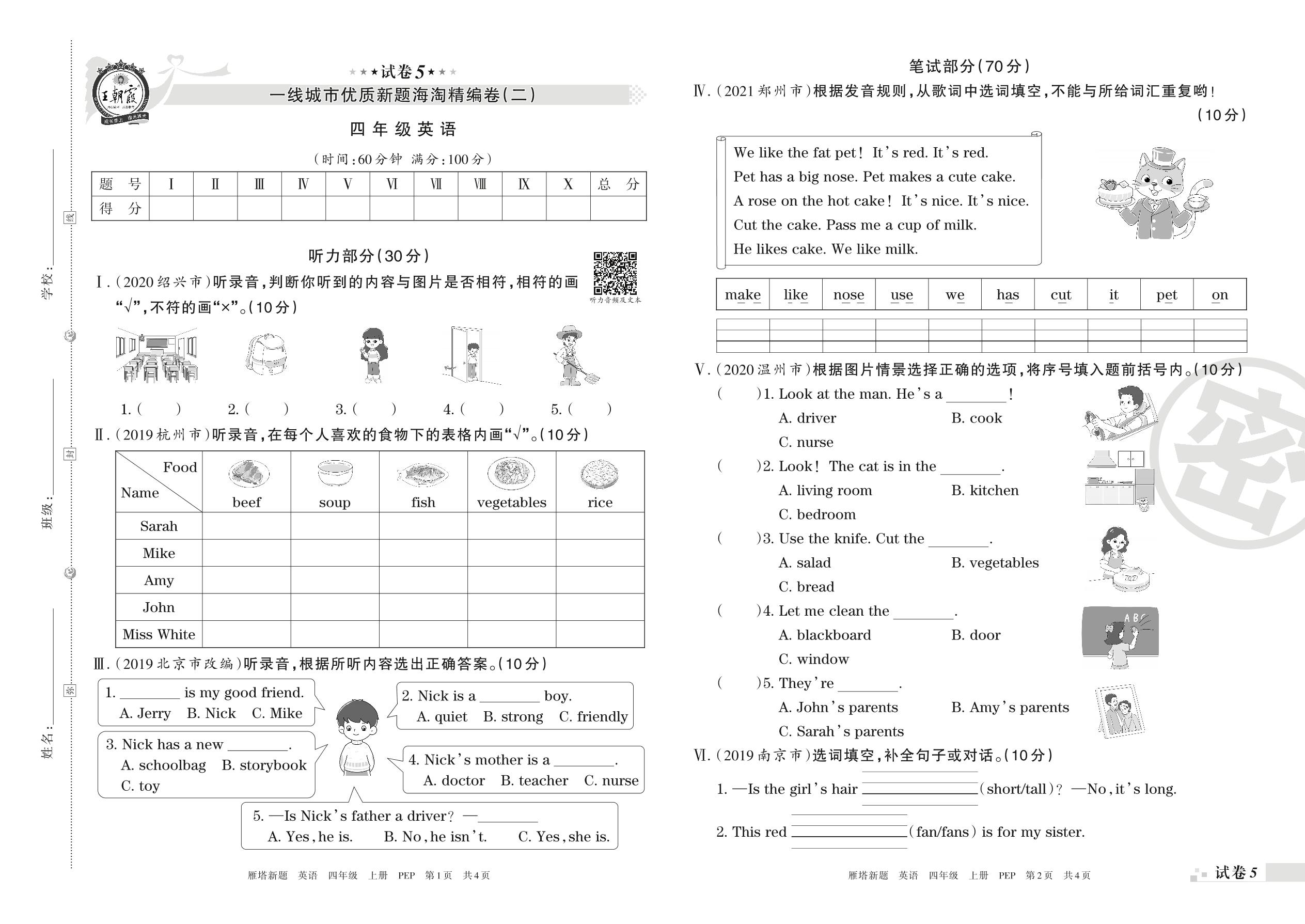 一线城市优质新题海淘精编卷(二)四年级上册英语(人教PEP版)【5】