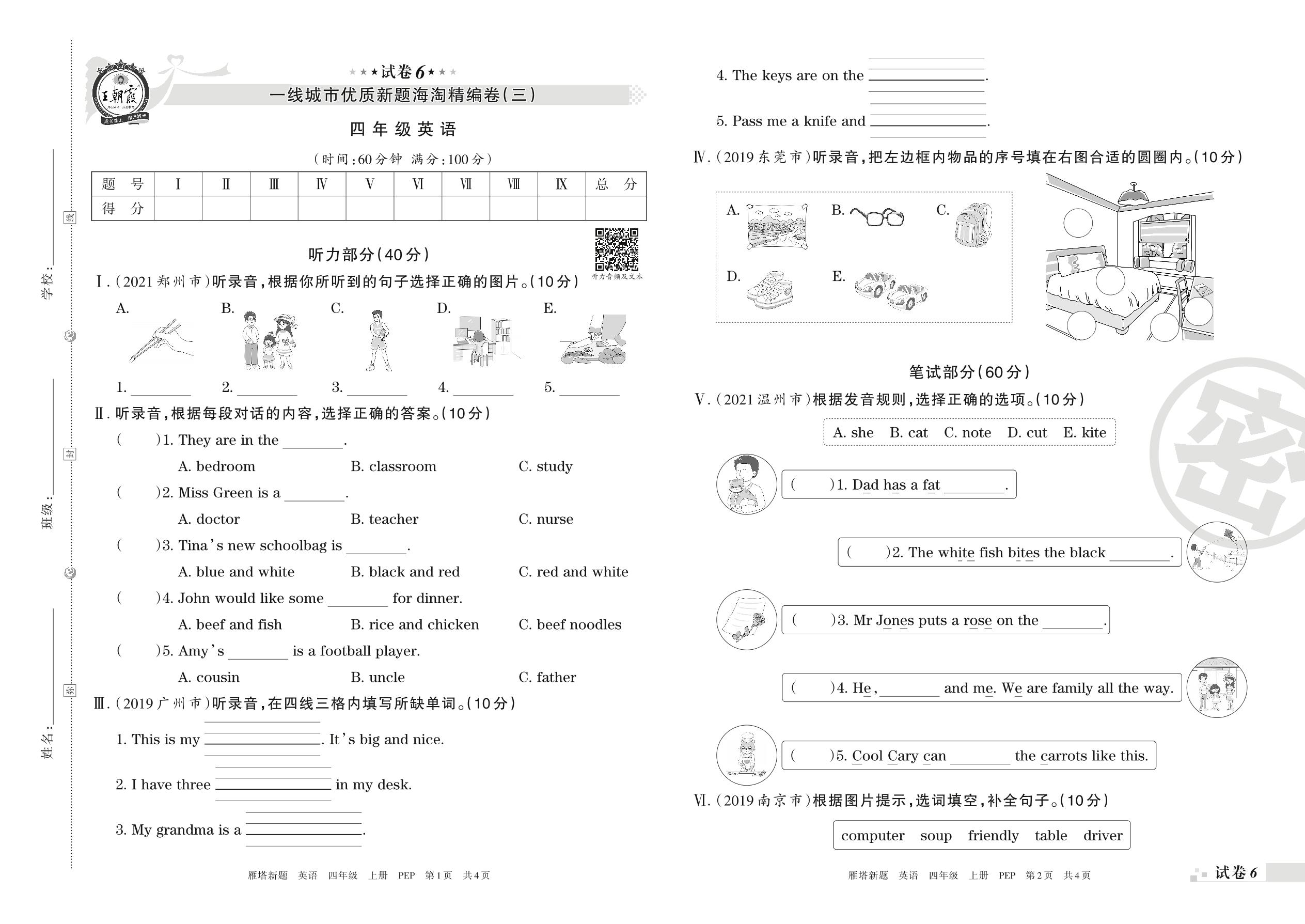 一线城市优质新题海淘精编卷(三)四年级上册英语(人教PEP版)【6】